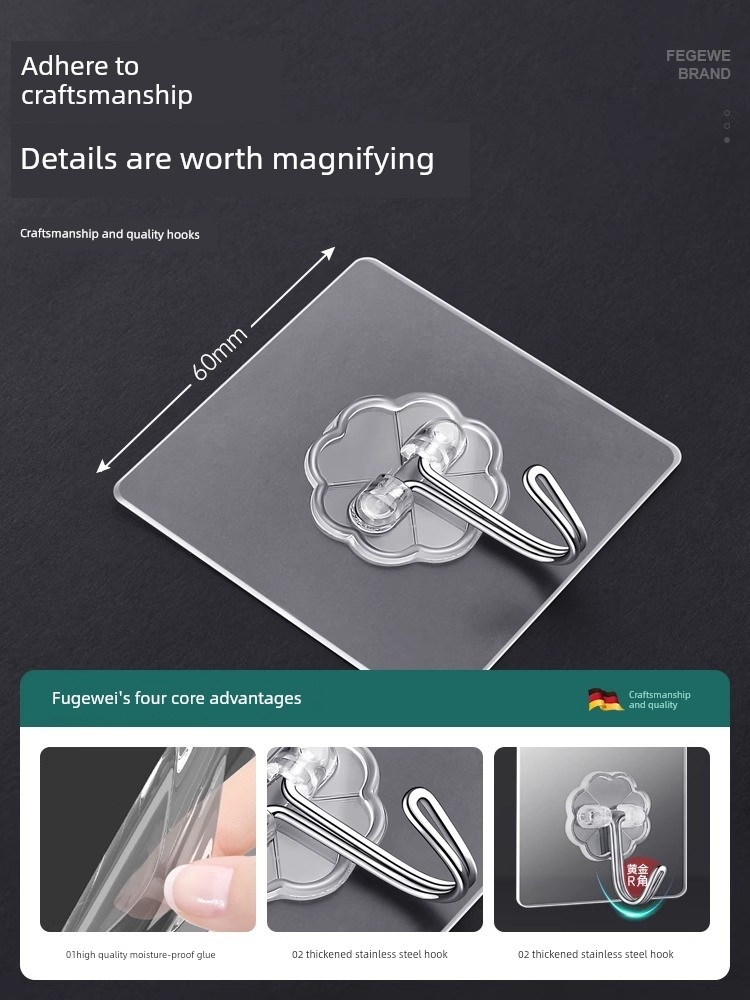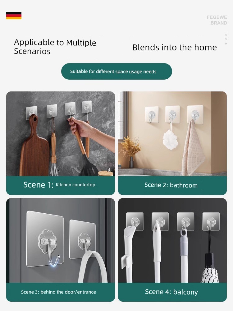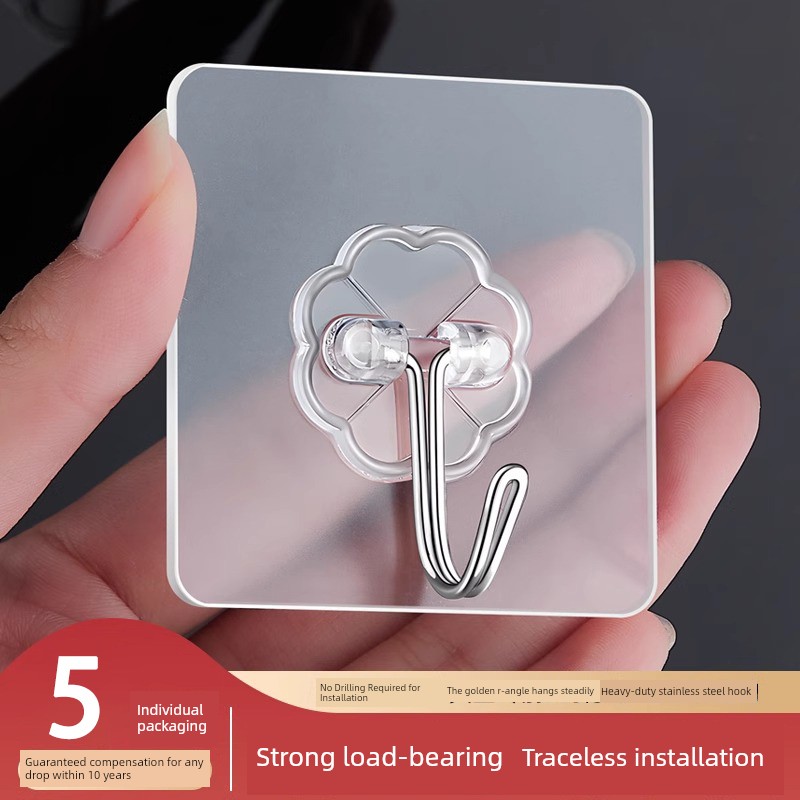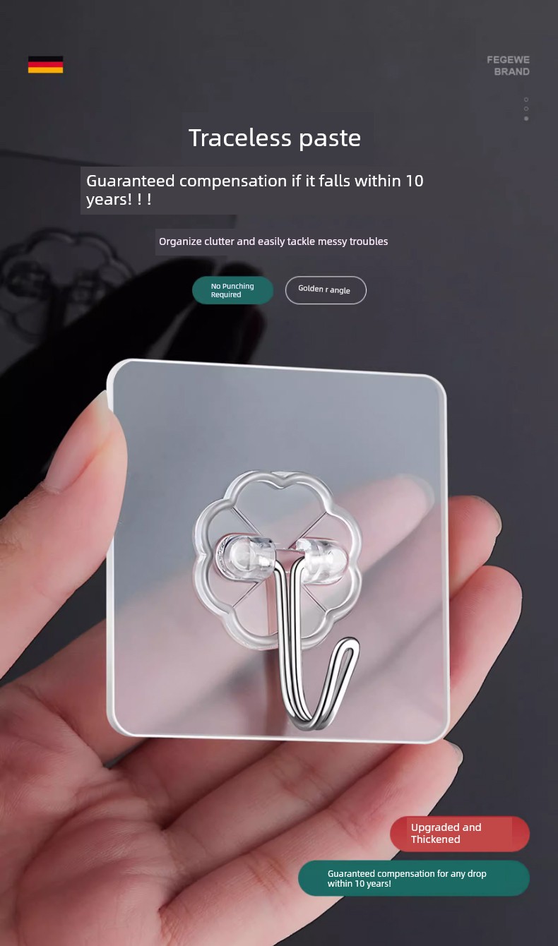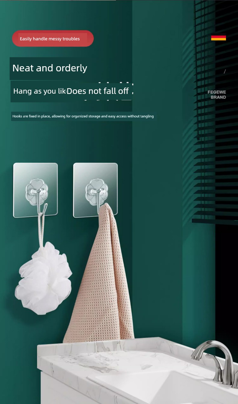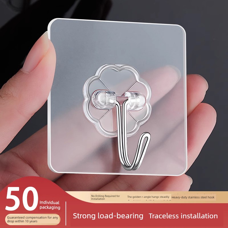 Strong Adhesive Hooks, Transparent and Traceless, Wall-Mounted, Heavy-Duty, No-Drill Hooks, Suitable for Bathroom and Kitchen