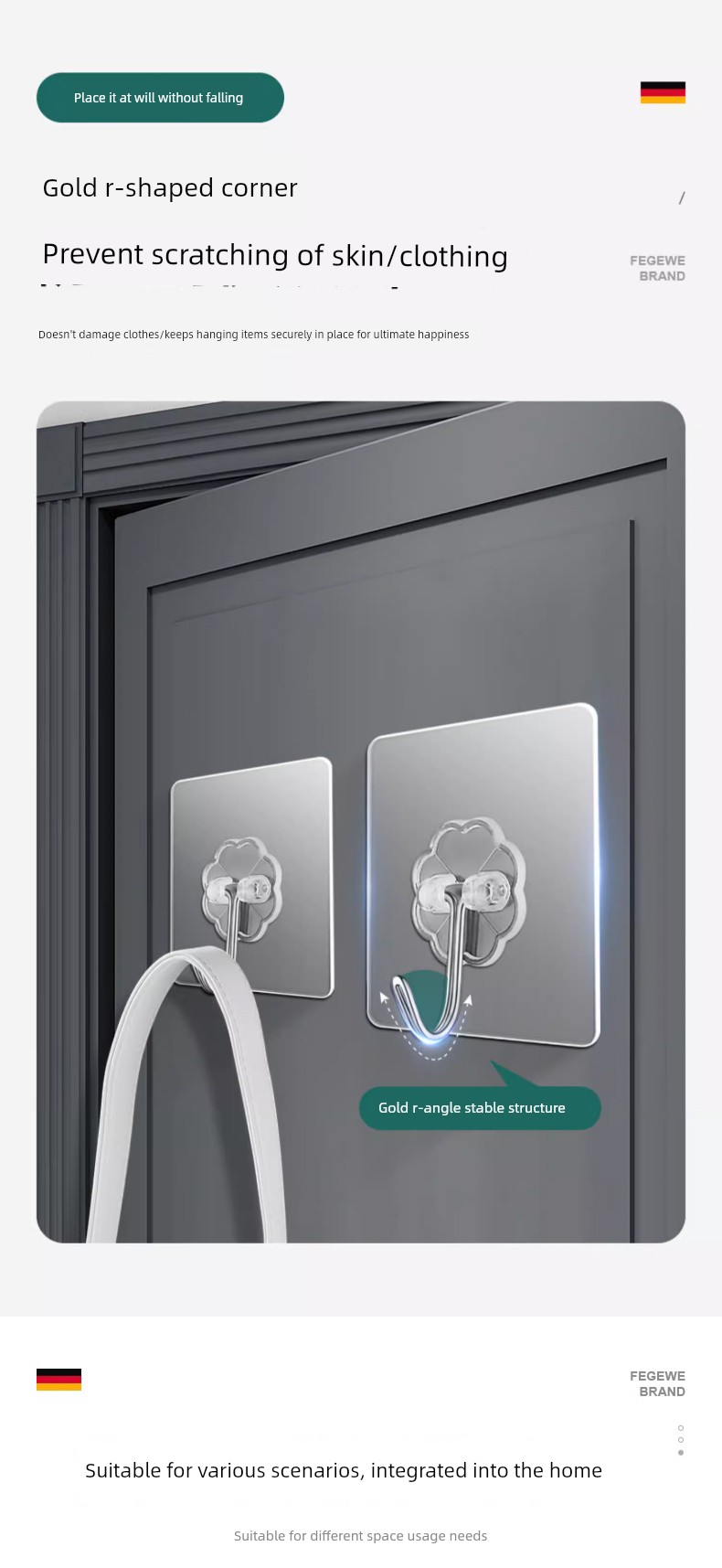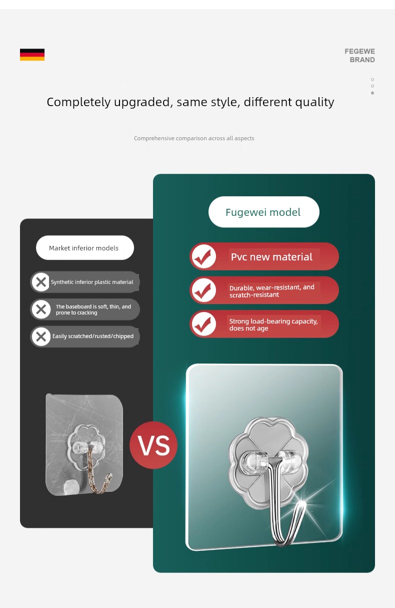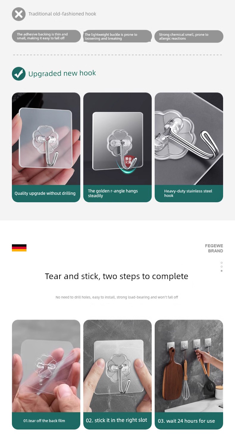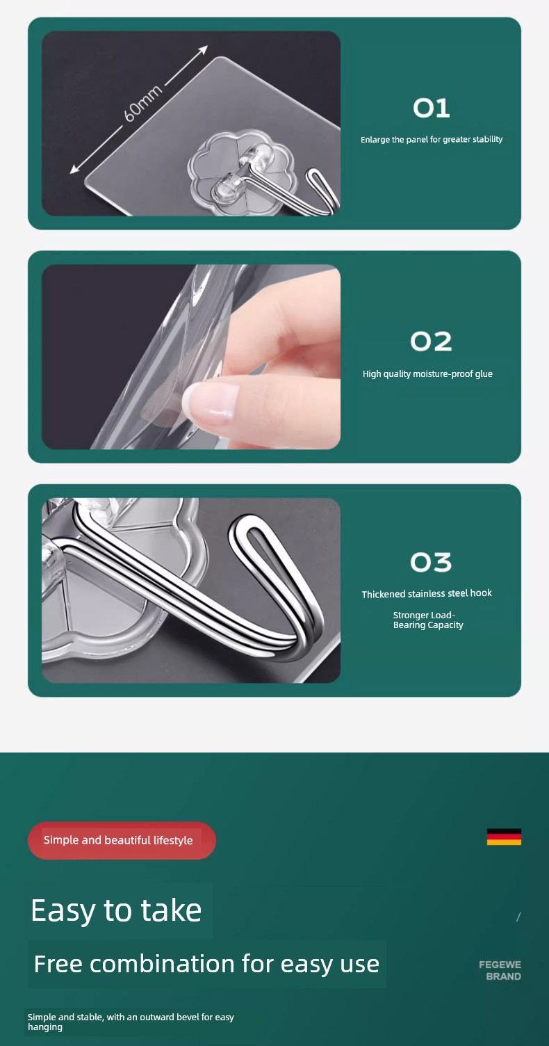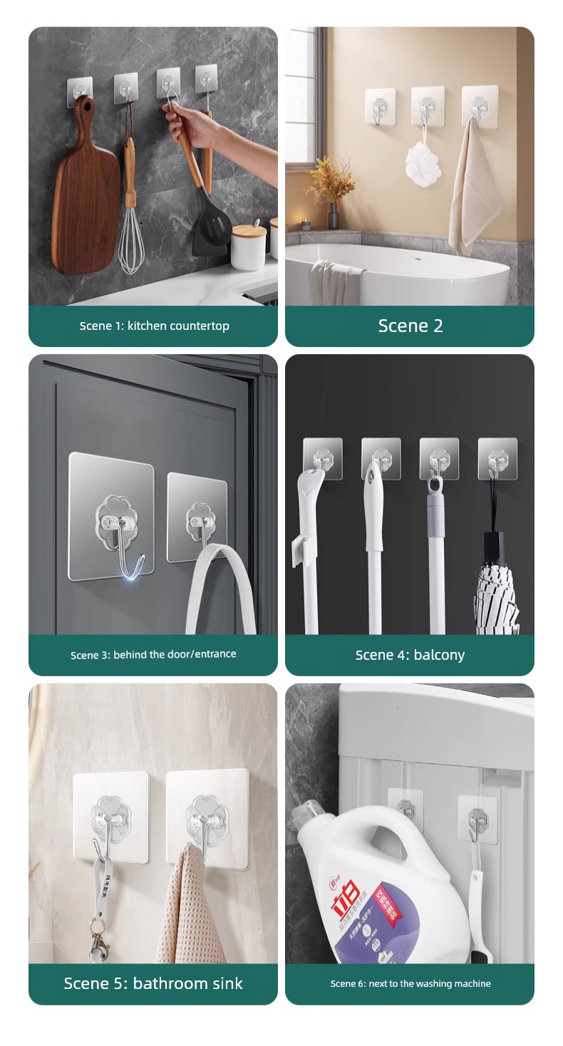 Strong Adhesive Hooks, Transparent and Traceless, Wall-Mounted, Heavy-Duty, No-Drill Hooks, Suitable for Bathroom and Kitchen