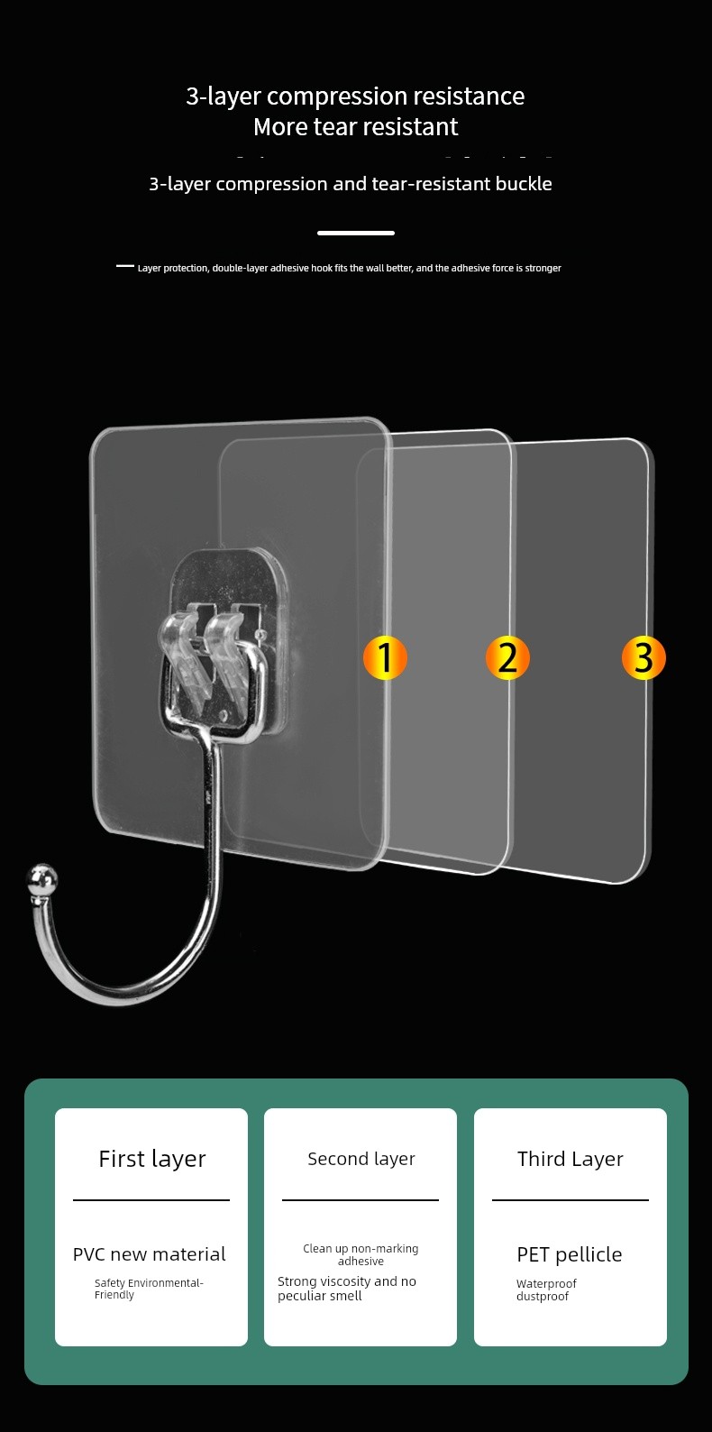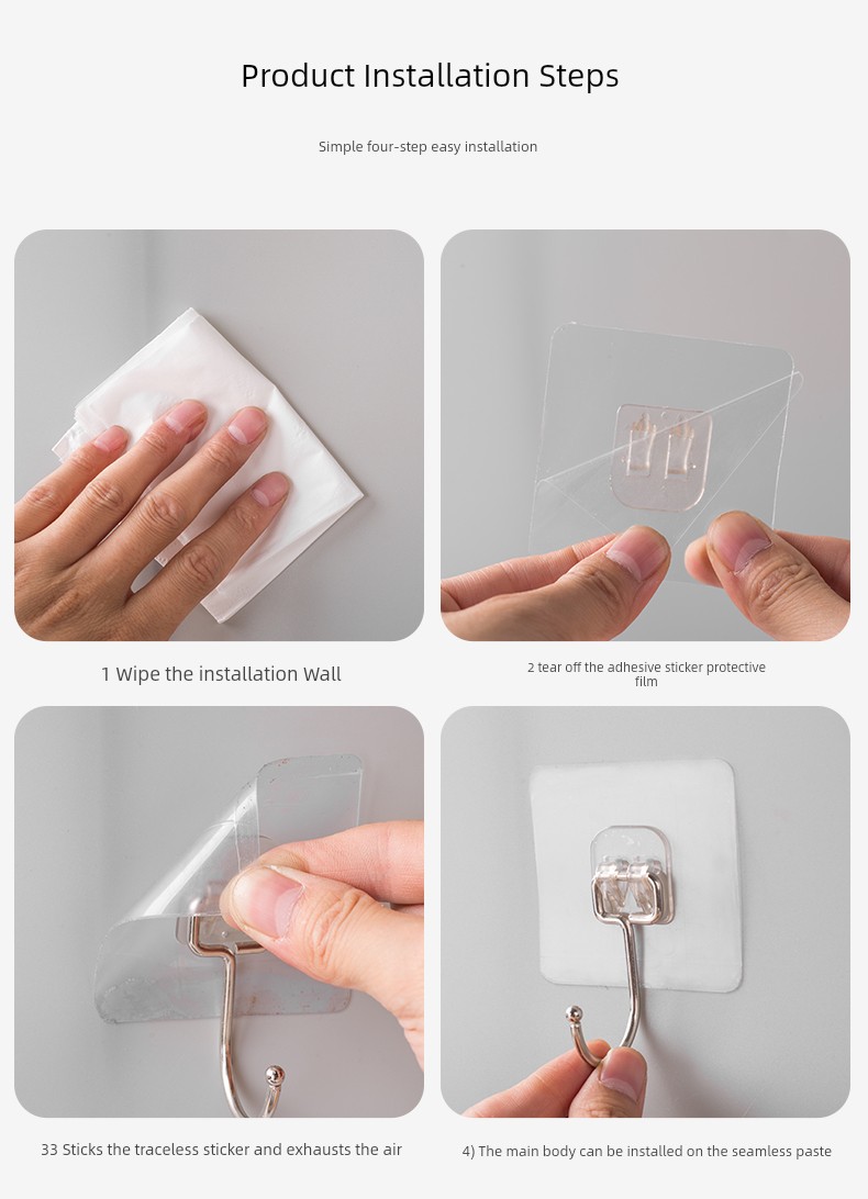 Strong Extra Large Hook Seamless Sticky Hook Wall Paste Load-Bearing Hook Punch-free Hook Bathroom Universal Kitchen