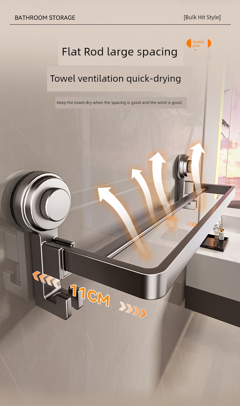 Suction Cup Towel Rack Punch-Free Toilet Hanging Rod Storage Rack Bathroom Toilet Bath Towel Rack Storage Toilet
