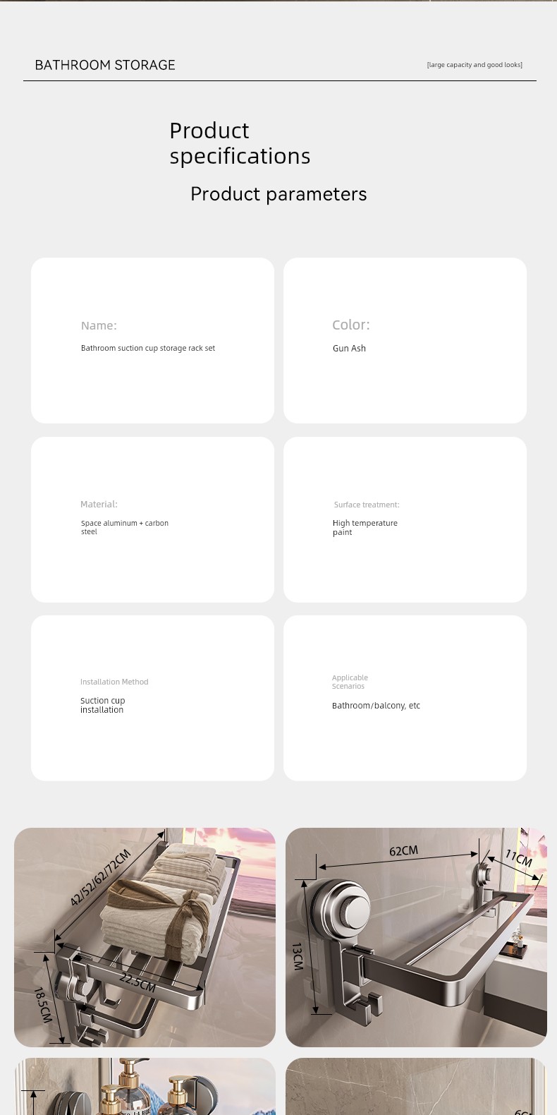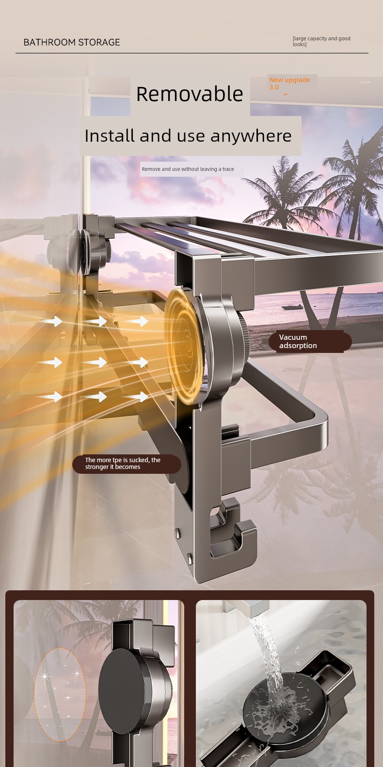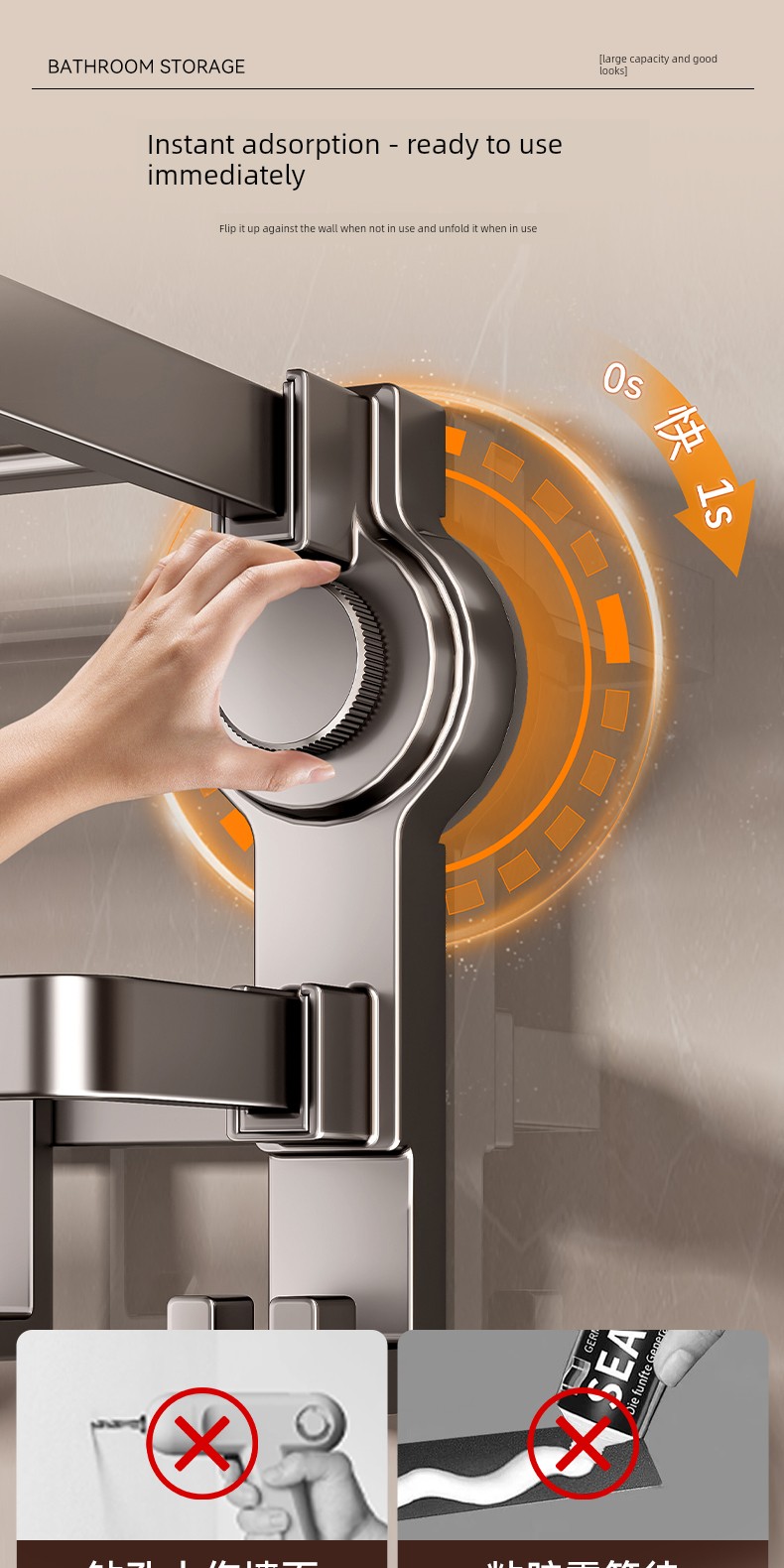 Innovative Three-Layer Storage [Suction Cup Installed in Seconds] 50cm