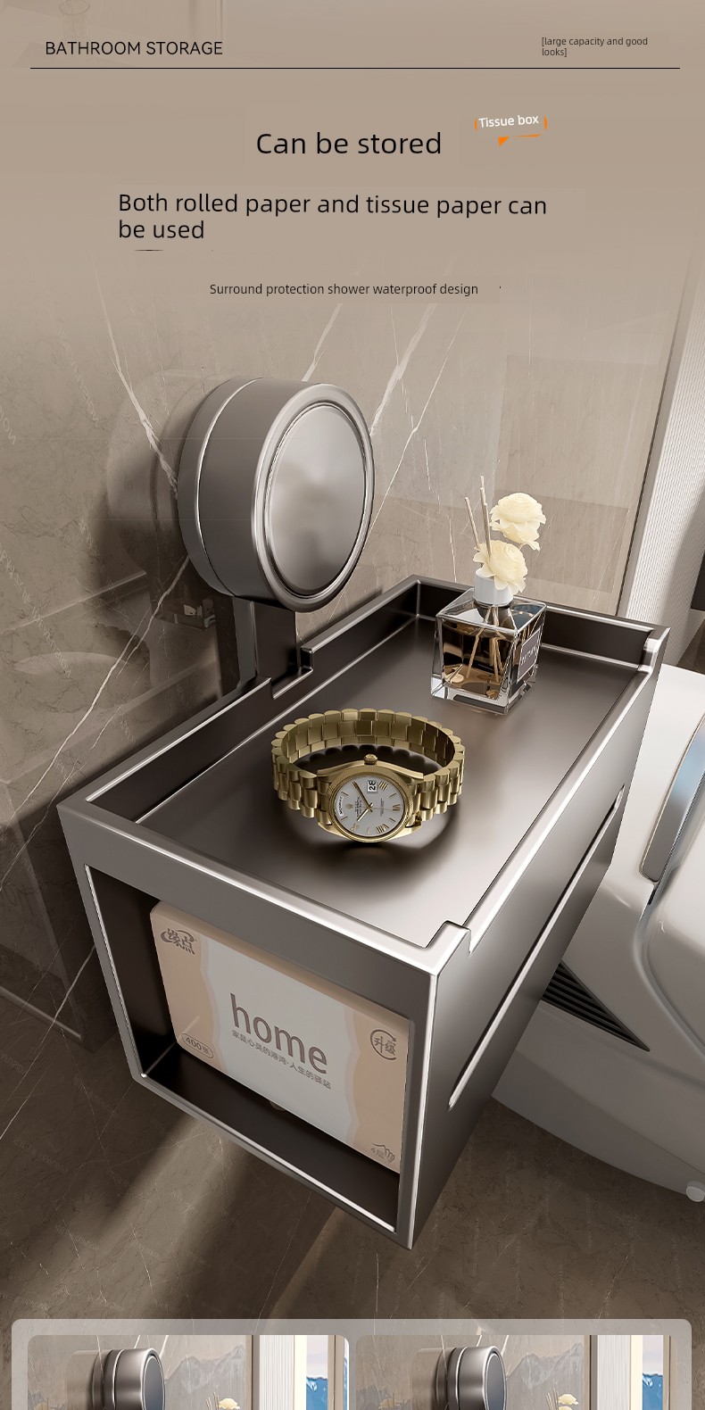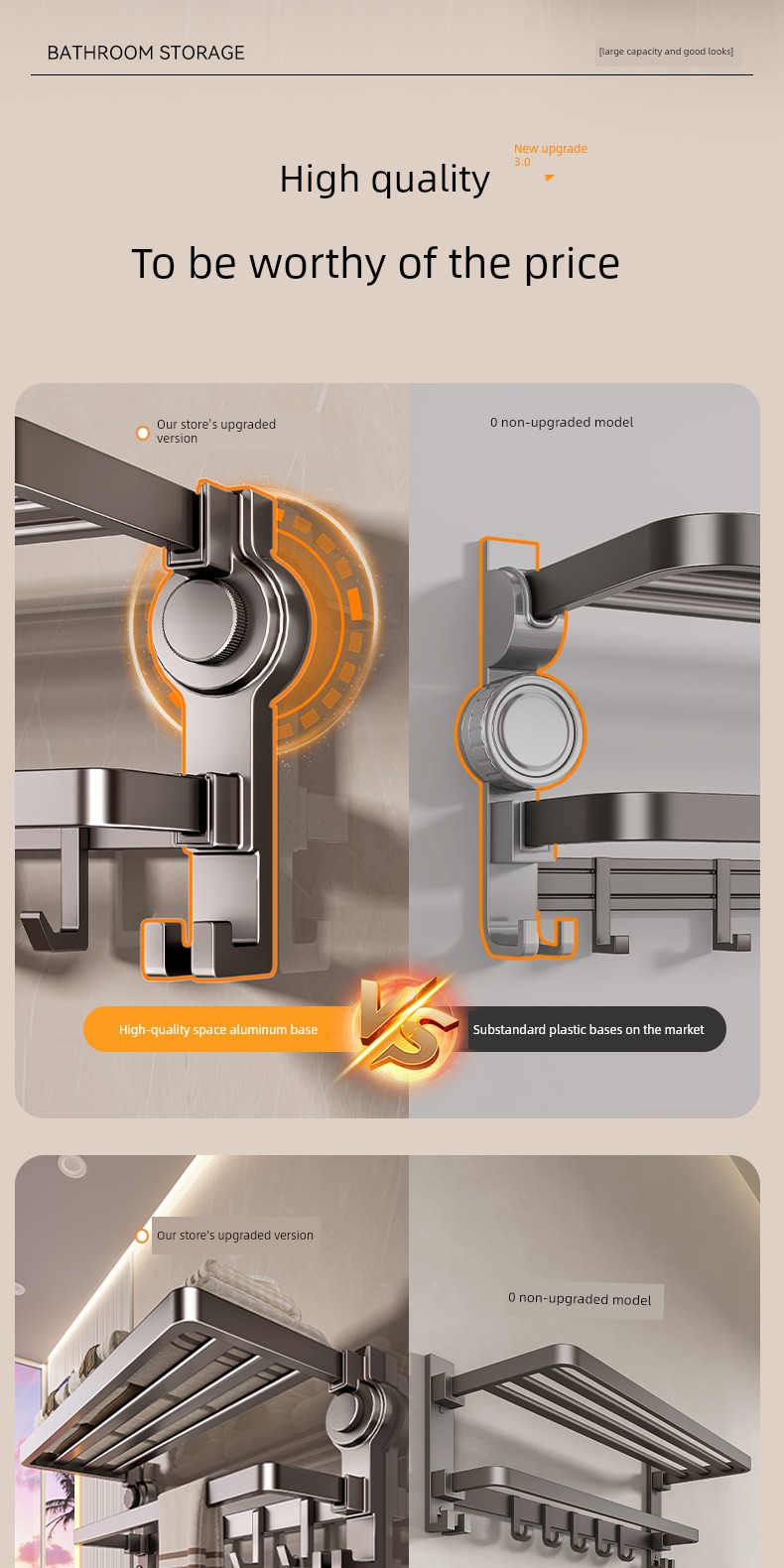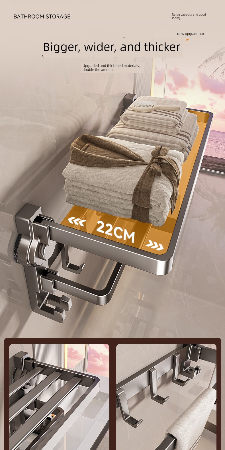 Innovative Three-Layer Storage [Suction Cup Installed in Seconds] 50cm