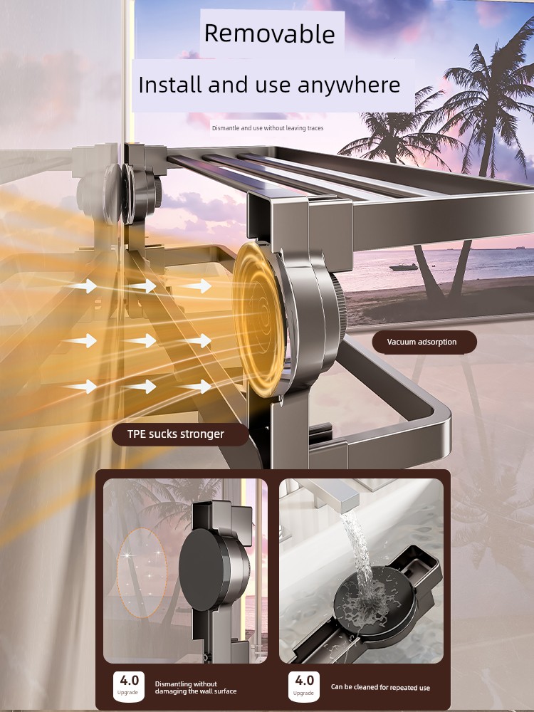 Innovative Three-Layer Storage [Suction Cup Installation in Seconds] 60cm