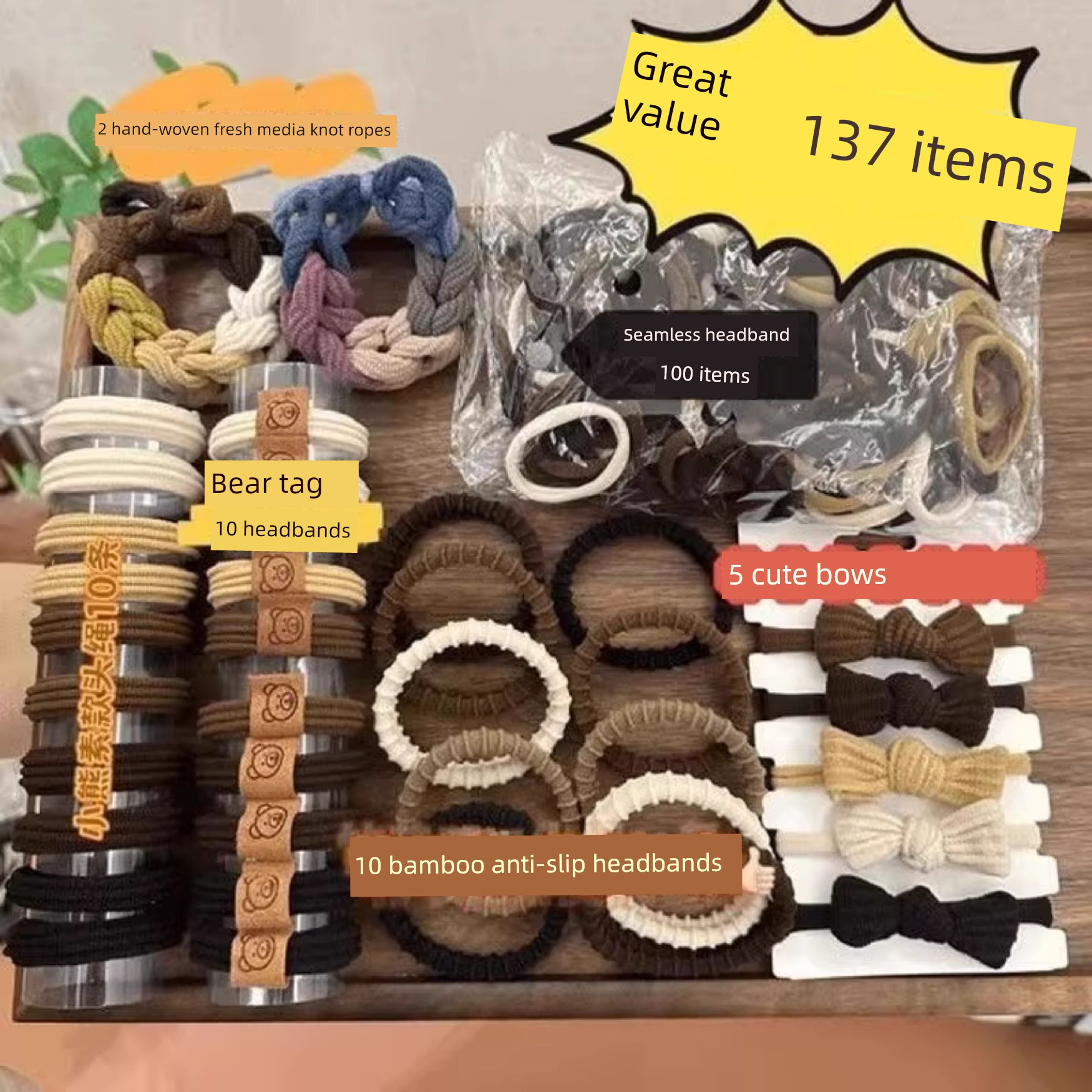 Super Value 137-Piece Set of Hair Ties, New Style Hair Bands for Women, Simple Hair Ties, High Elasticity, Durable, High Ponytail Hair Ties