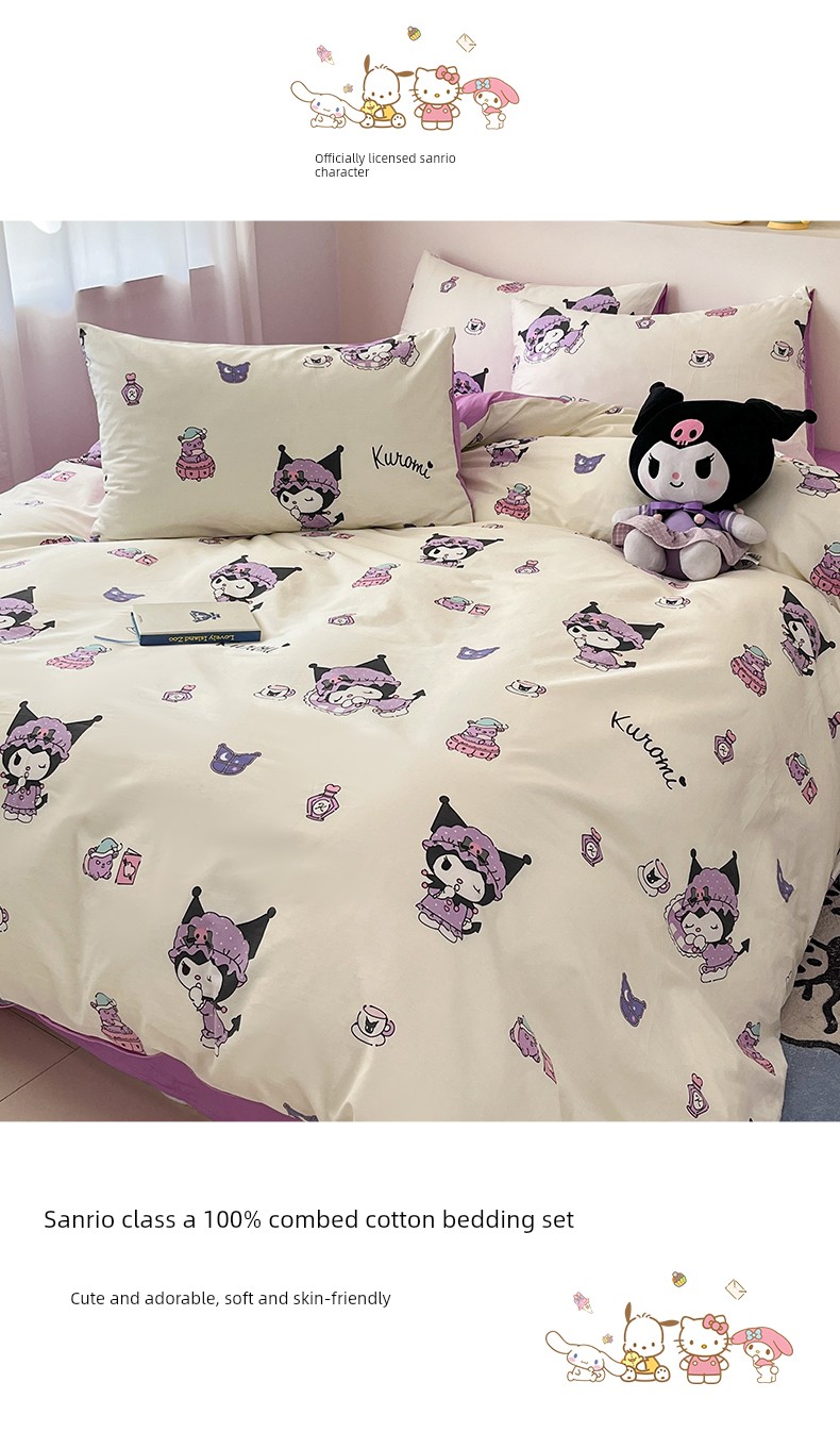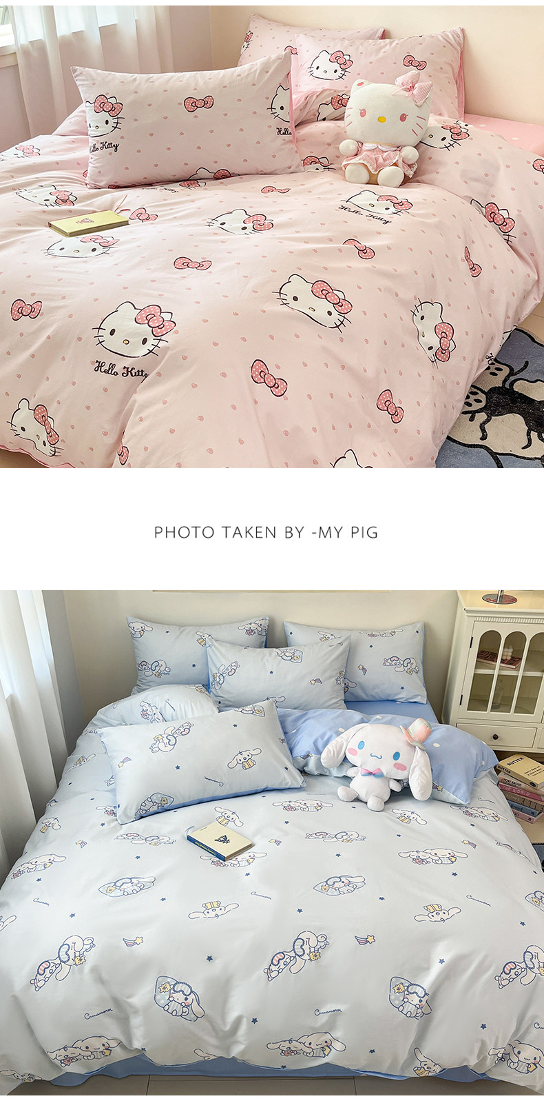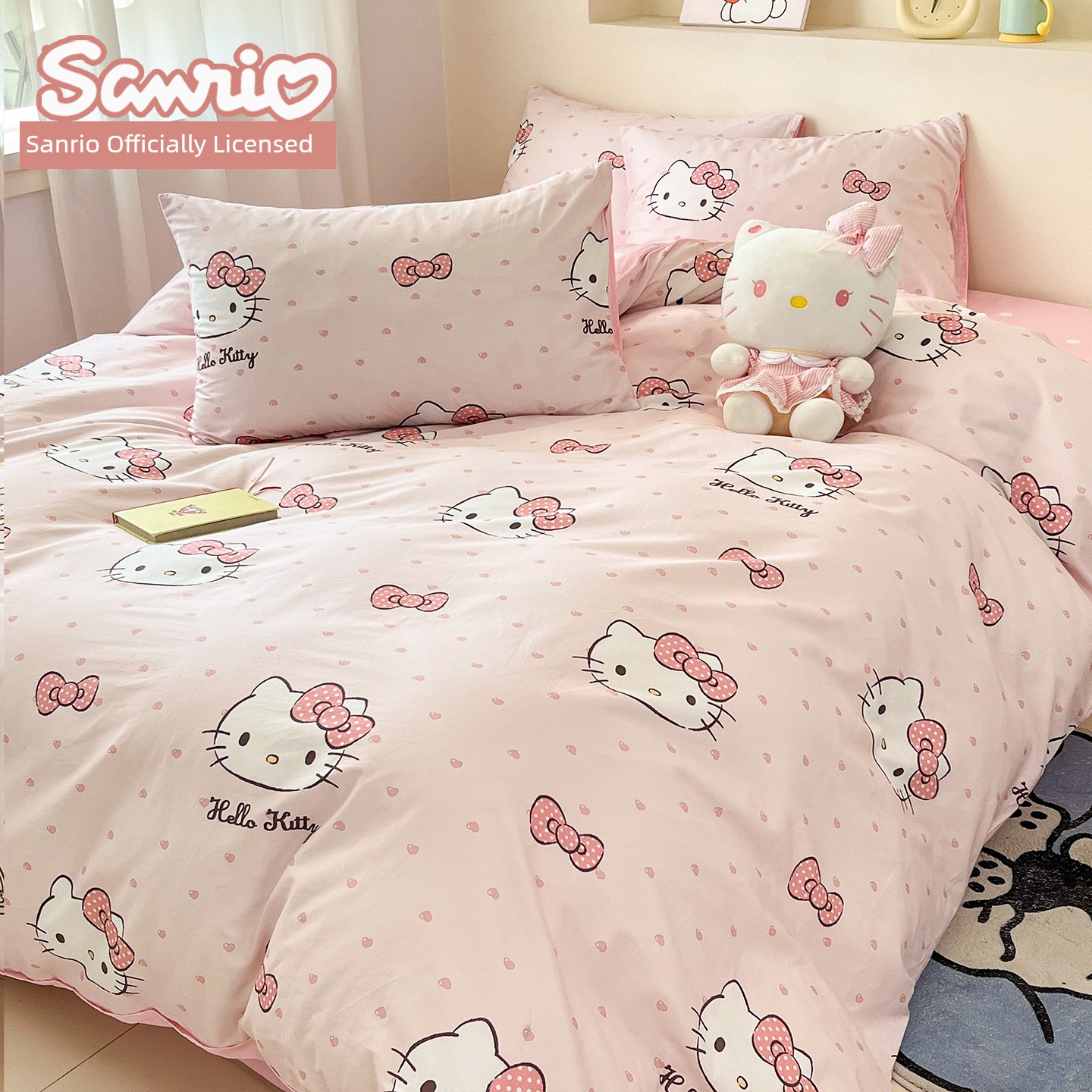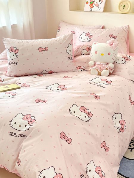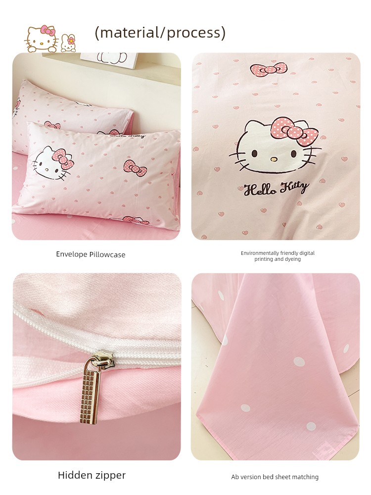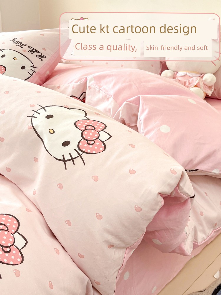 Hellokittya Class 100 Pure Cotton Bed Four-Piece Set Young Adult Cotton Bed Sheets Quilt Cover Kids Cartoon Three-Piece Set