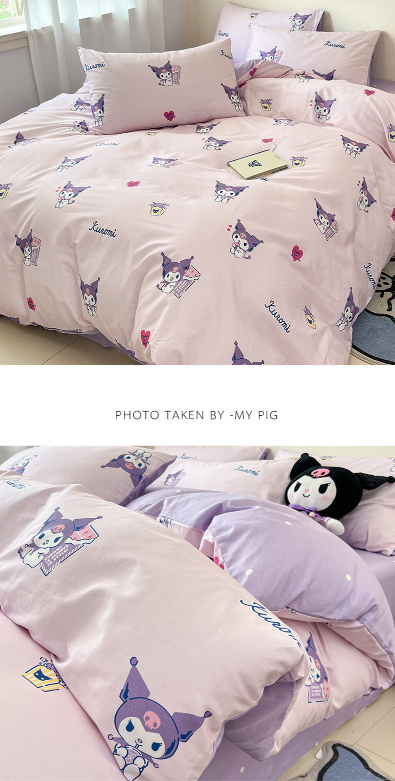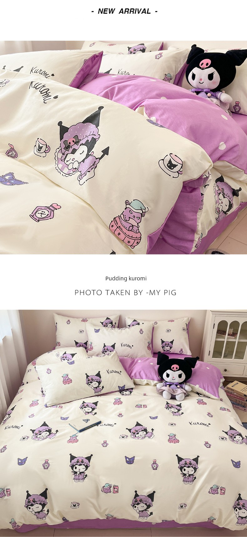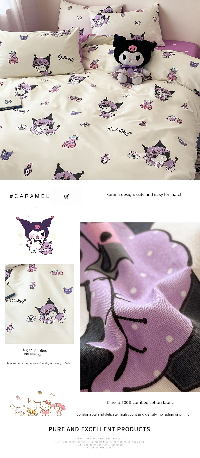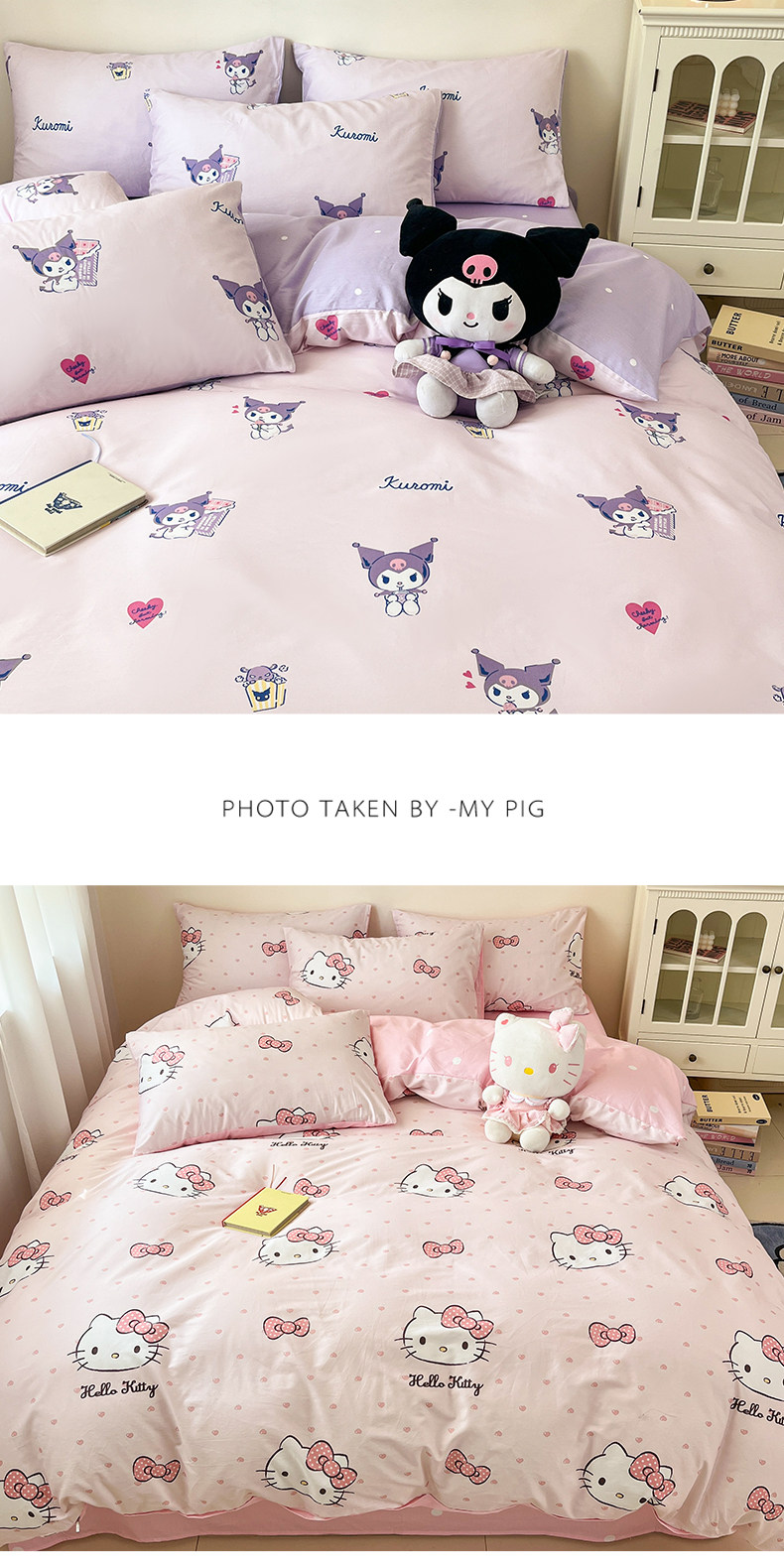 Hellokittya Class 100 Pure Cotton Bed Four-Piece Set Young Adult Cotton Bed Sheets Quilt Cover Kids Cartoon Three-Piece Set