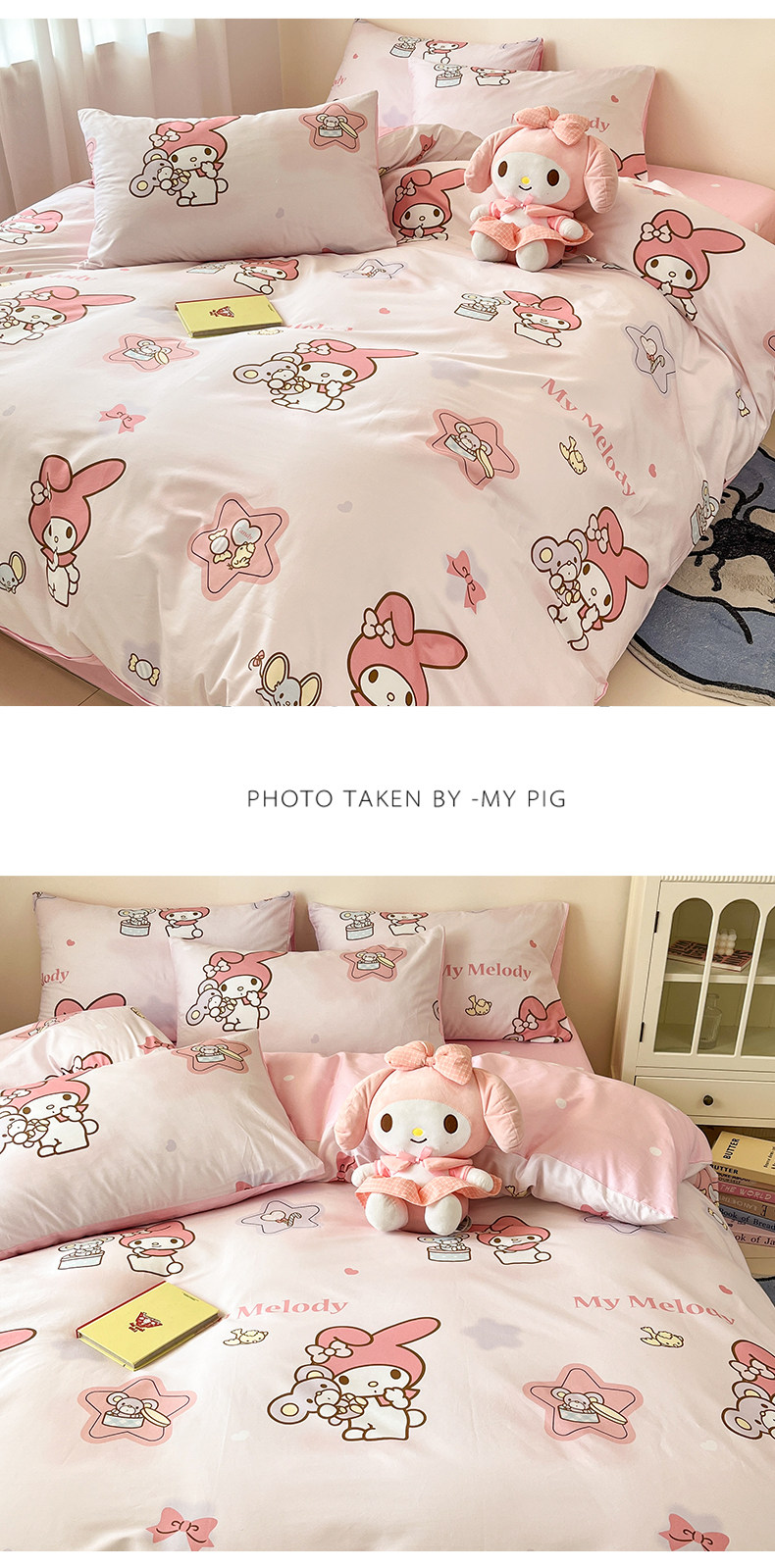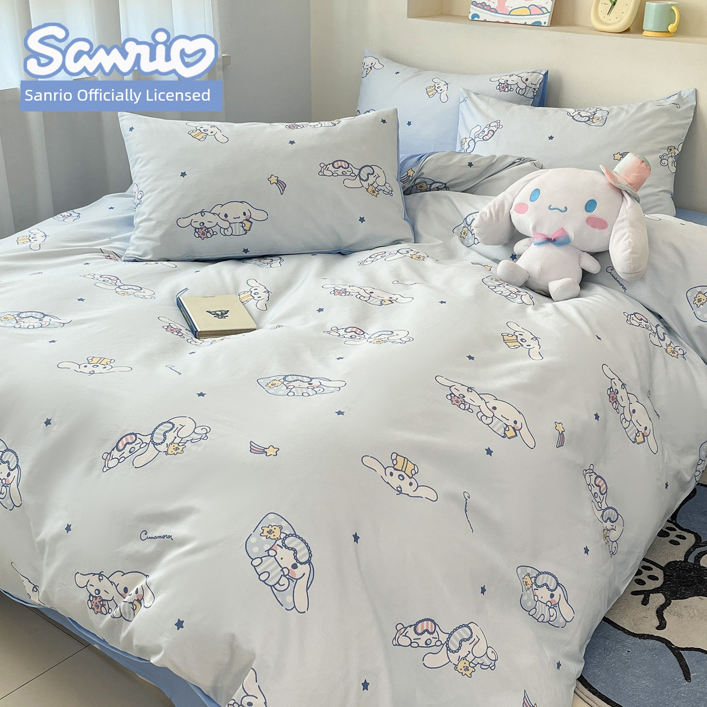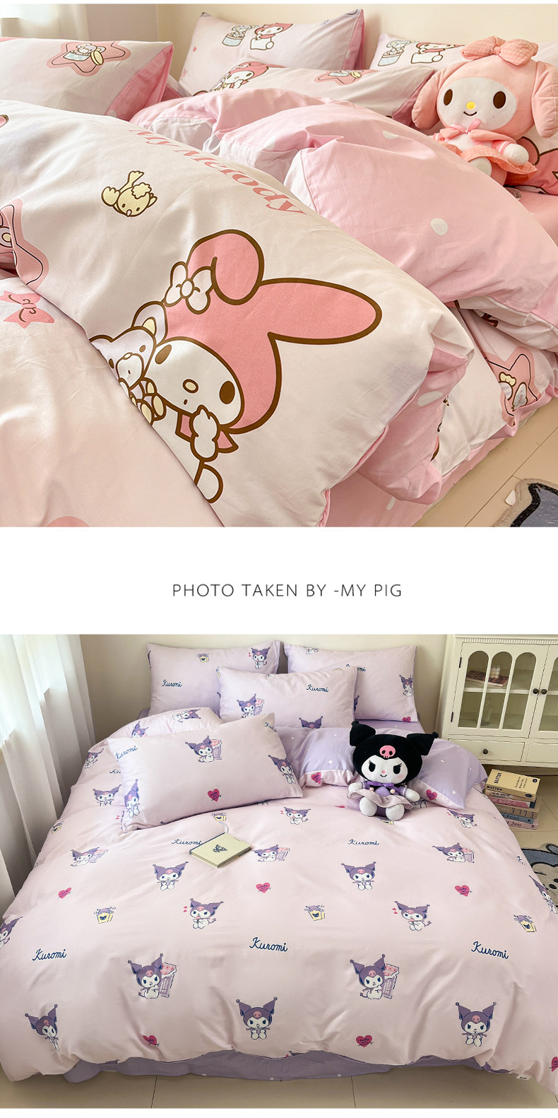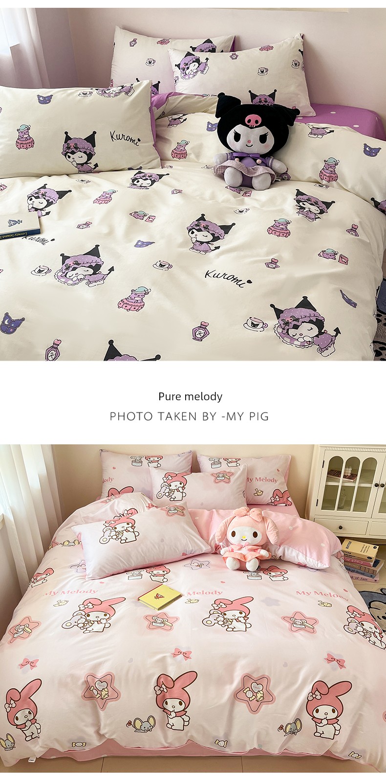 Hellokittya Class 100 Pure Cotton Bed Four-Piece Set Young Adult Cotton Bed Sheets Quilt Cover Kids Cartoon Three-Piece Set