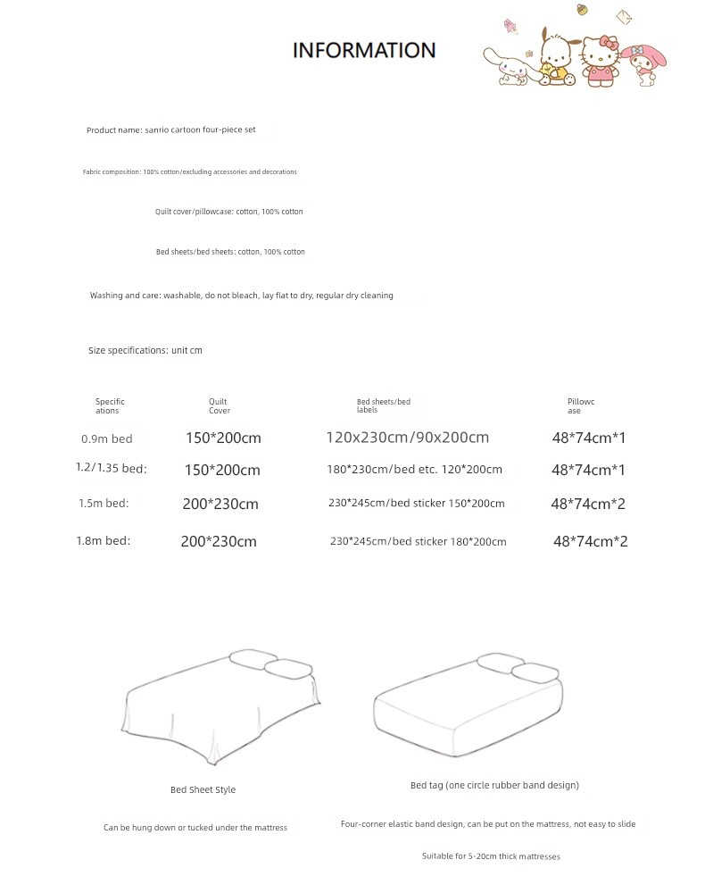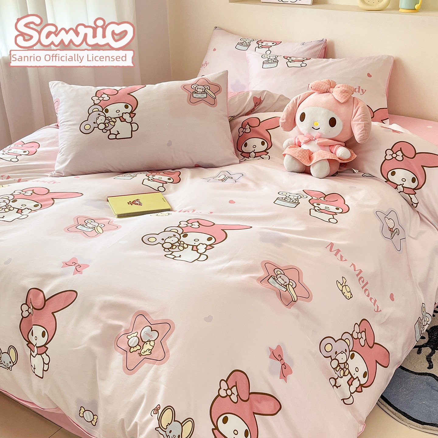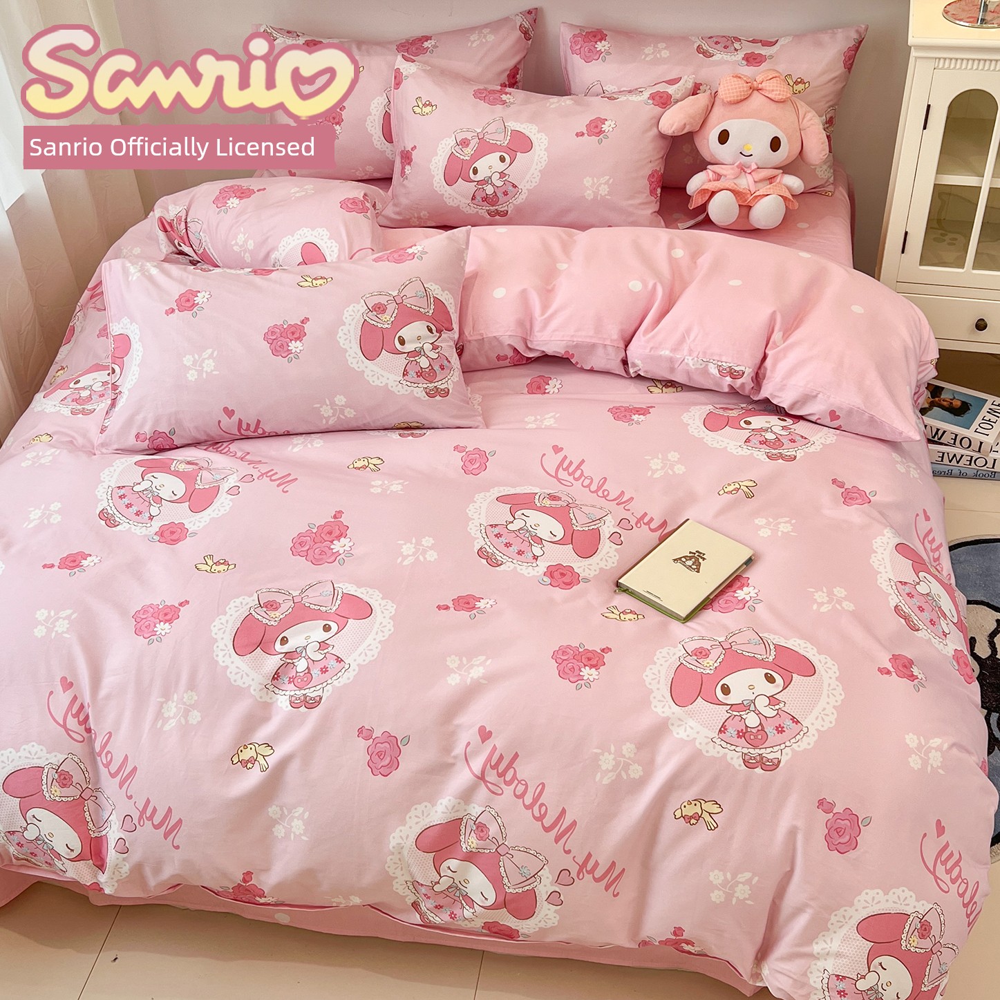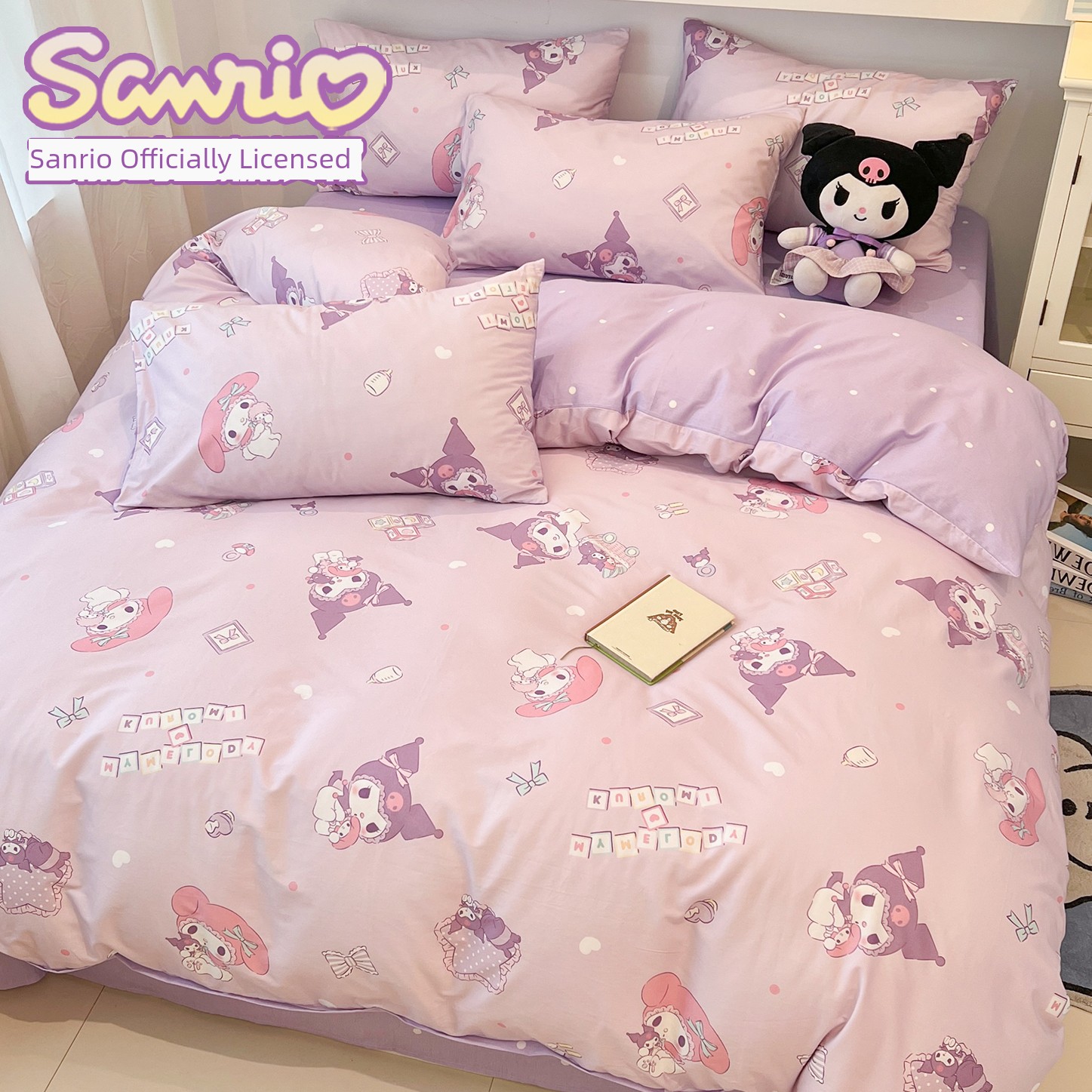Hellokittya Class 100 Pure Cotton Bed Four-Piece Set Young Adult Cotton Bed Sheets Quilt Cover Kids Cartoon Three-Piece Set