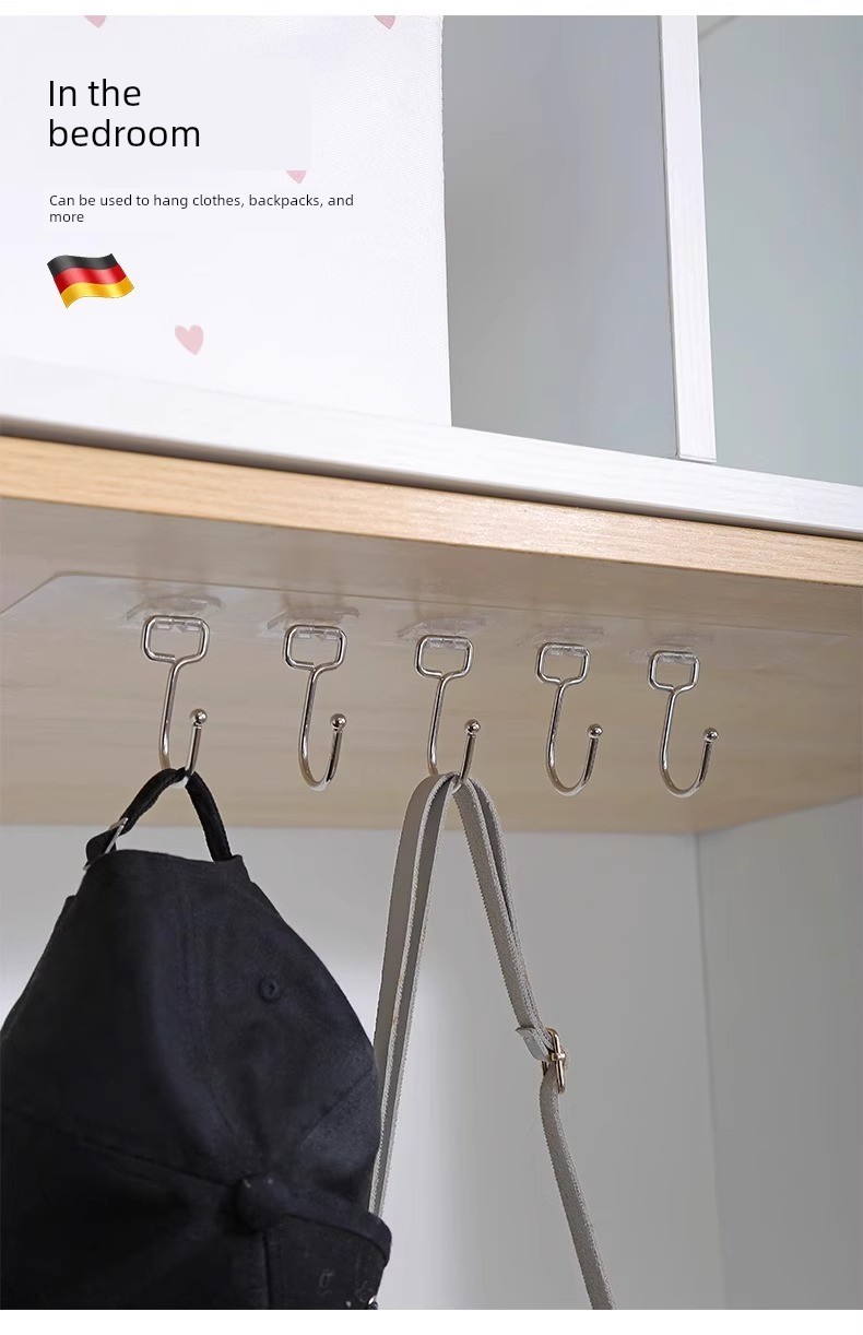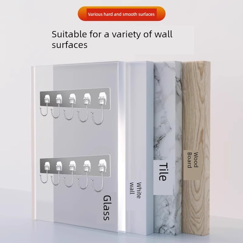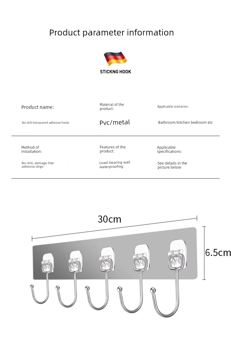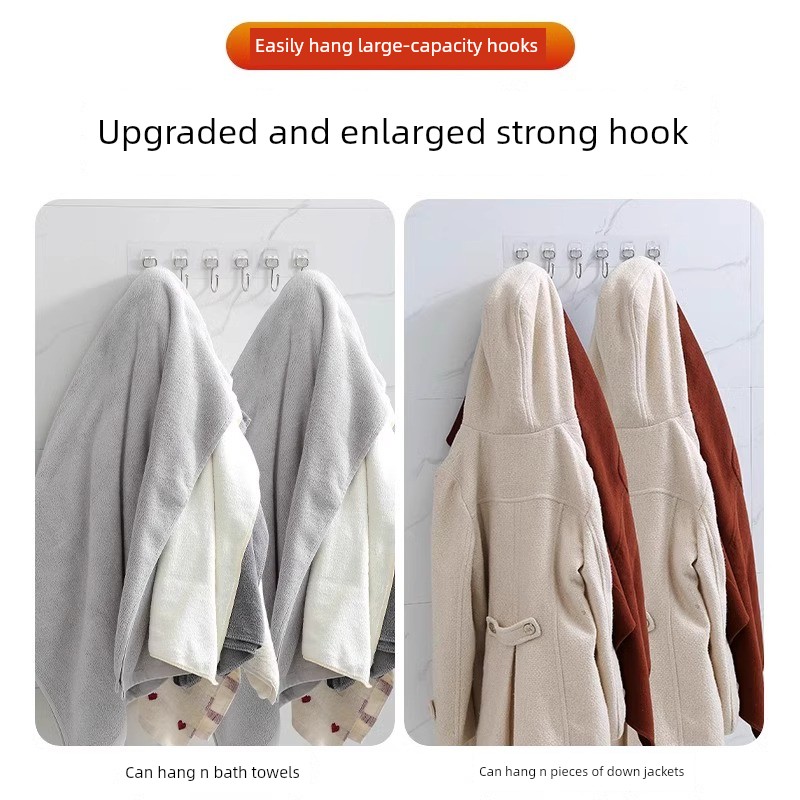 No-Drill Hooks for Kitchen Walls, Behind Doors, Clothes Hangers, Adhesive Hooks, Strong Adhesive, Bathroom, Row of Hooks, Traceless Hooks