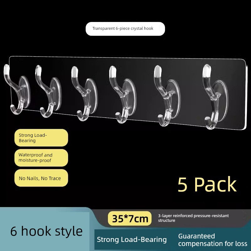 [Guaranteed Compensation if Dropped] 6-Piece Crystal Hook [Pack of 5]