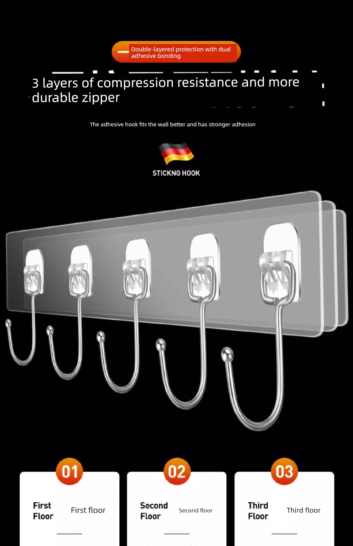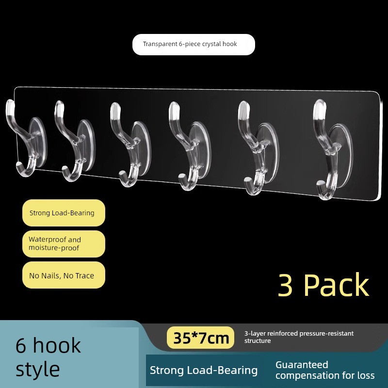 [Guaranteed Compensation for Falling] 6-Piece Crystal Hook [Pack of 3]