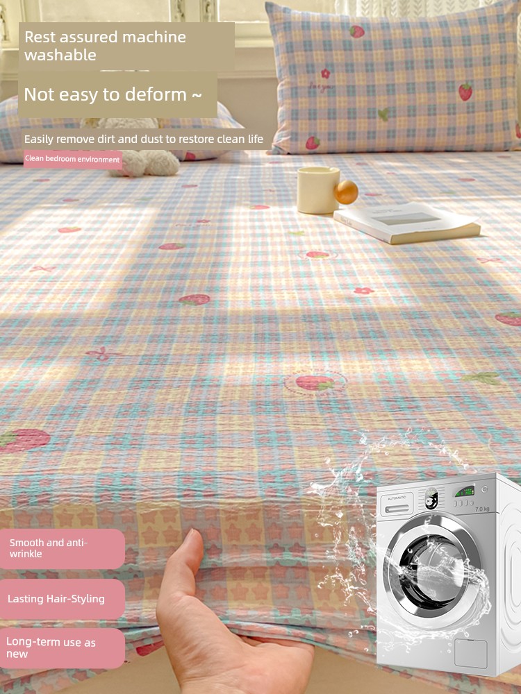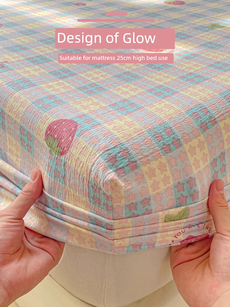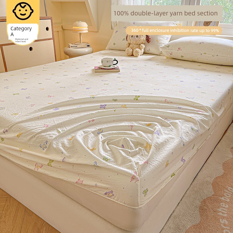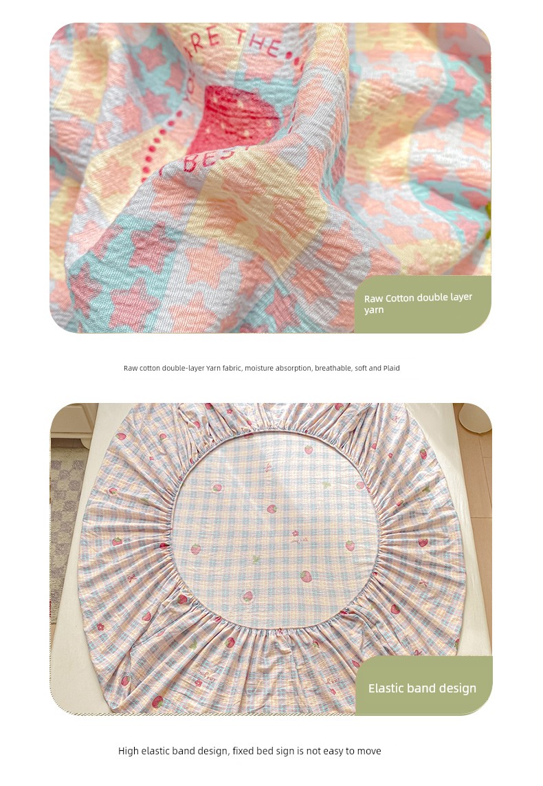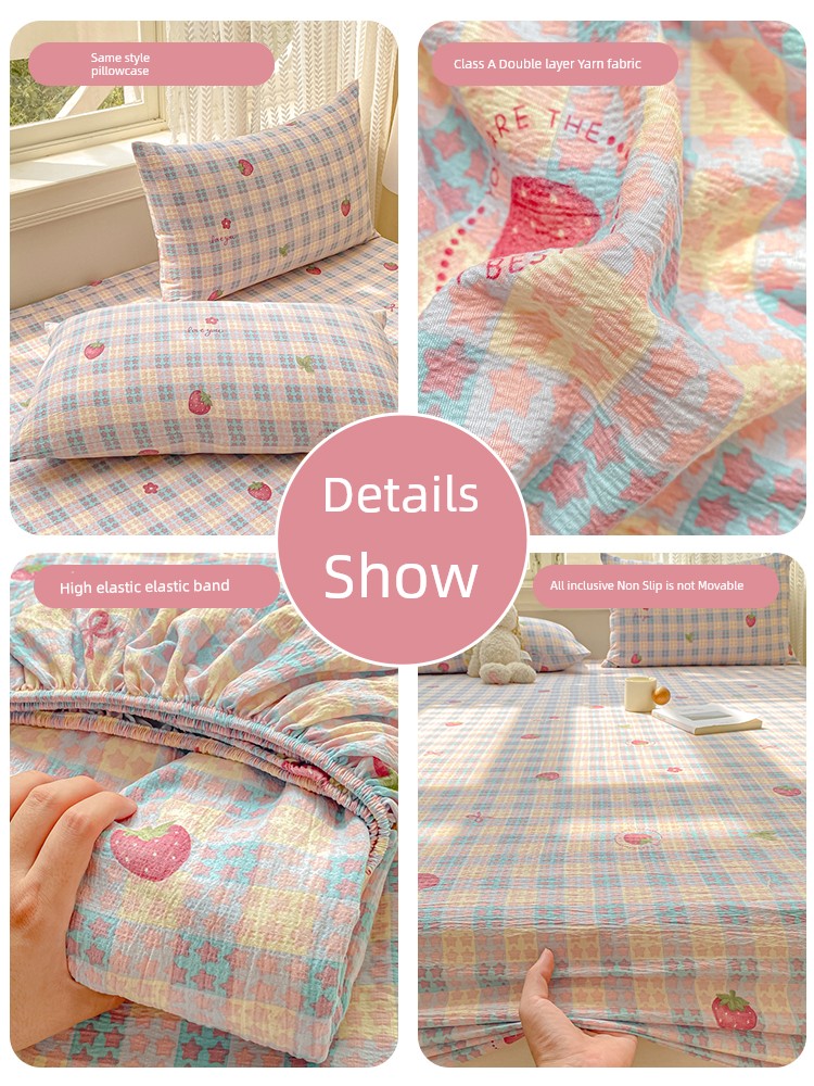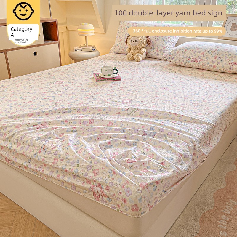 INS Double-Layer Yarn Fitted Sheet One-Piece 2025 New Arrival Non-Cotton Pure Cotton Dormitory Single Sheet Set Mattress Protective Cover 3