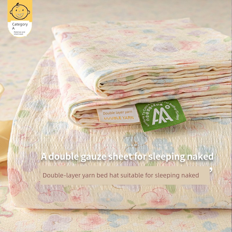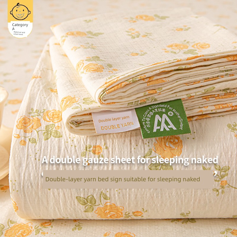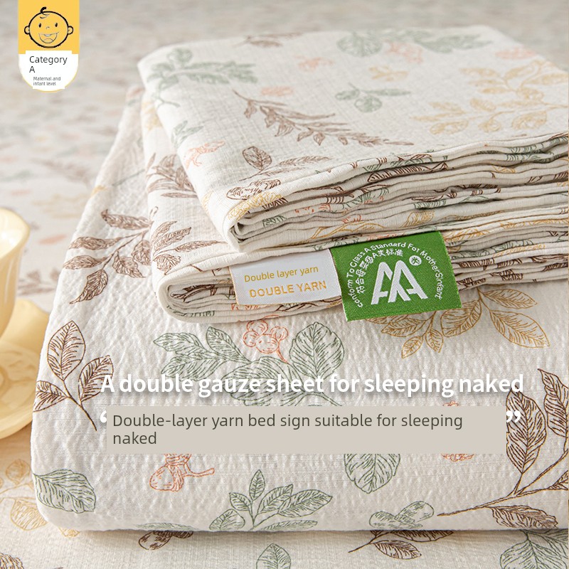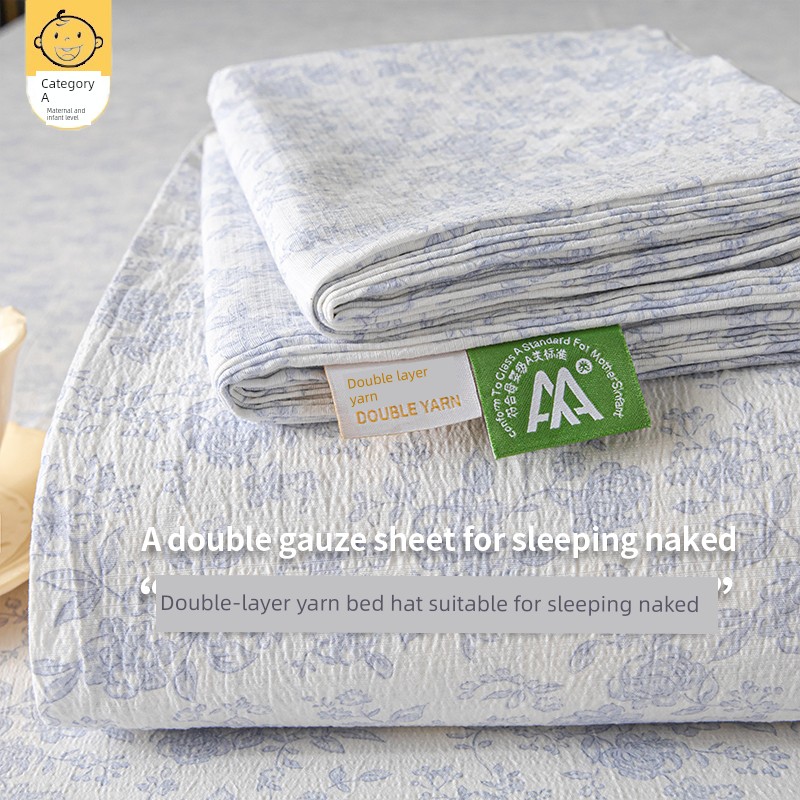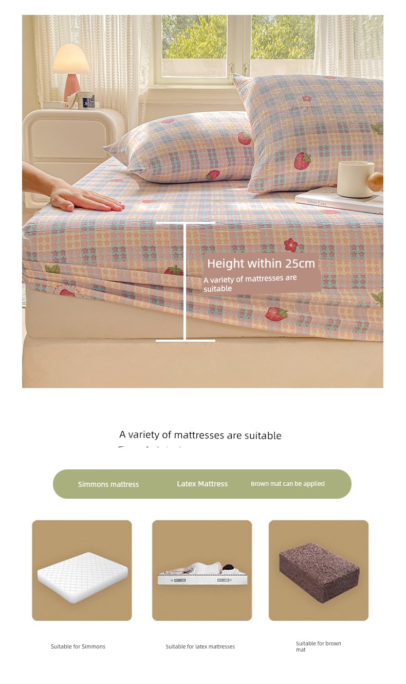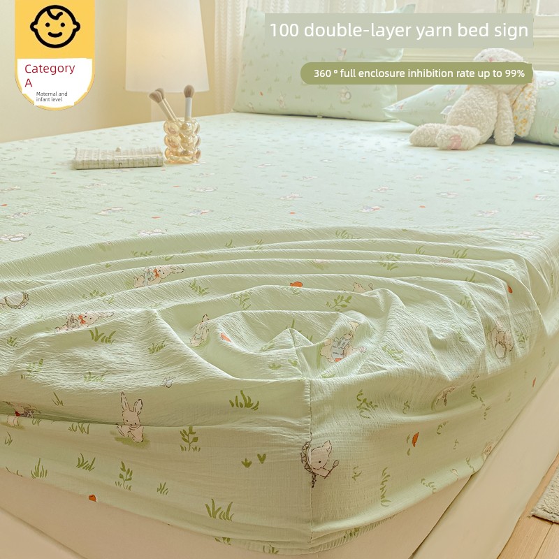 INS Double-Layer Yarn Fitted Sheet One-Piece 2025 New Arrival Non-Cotton Pure Cotton Dormitory Single Sheet Set Mattress Protective Cover 3