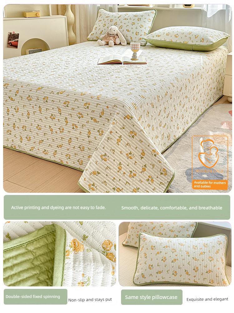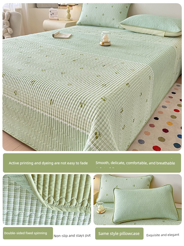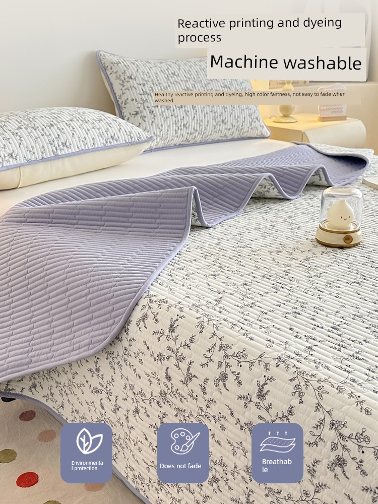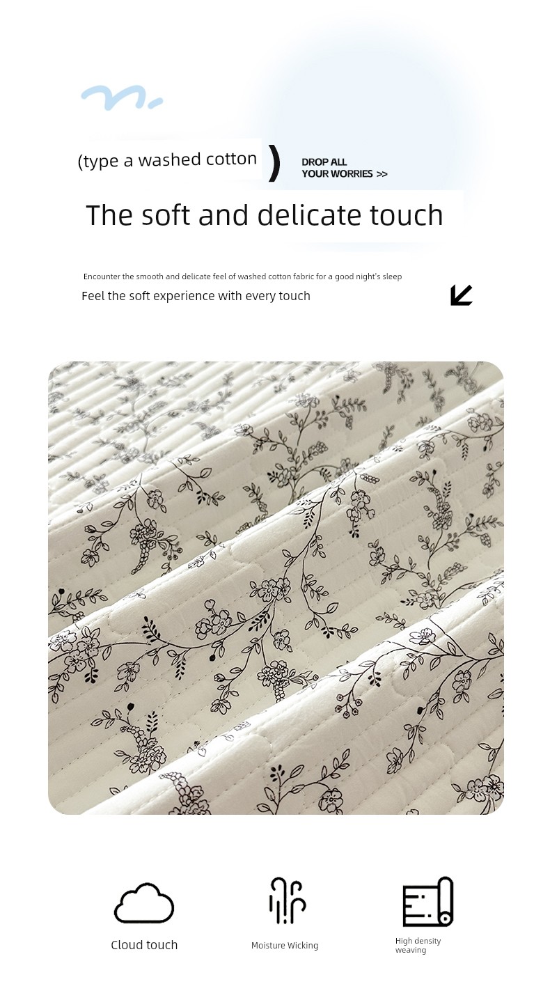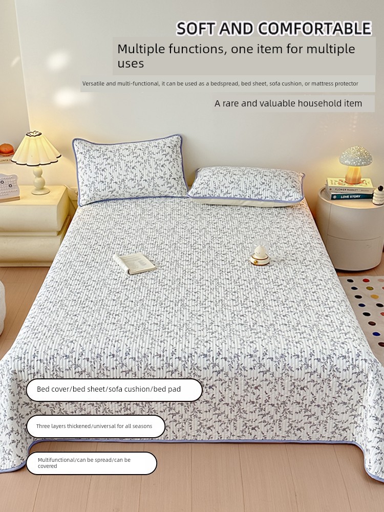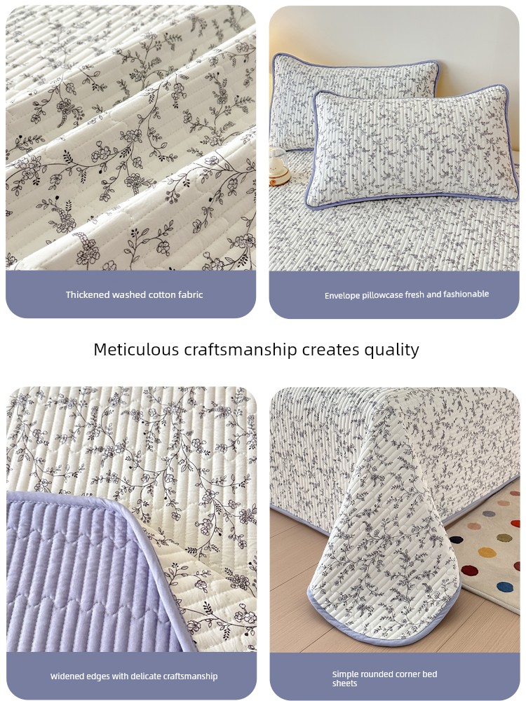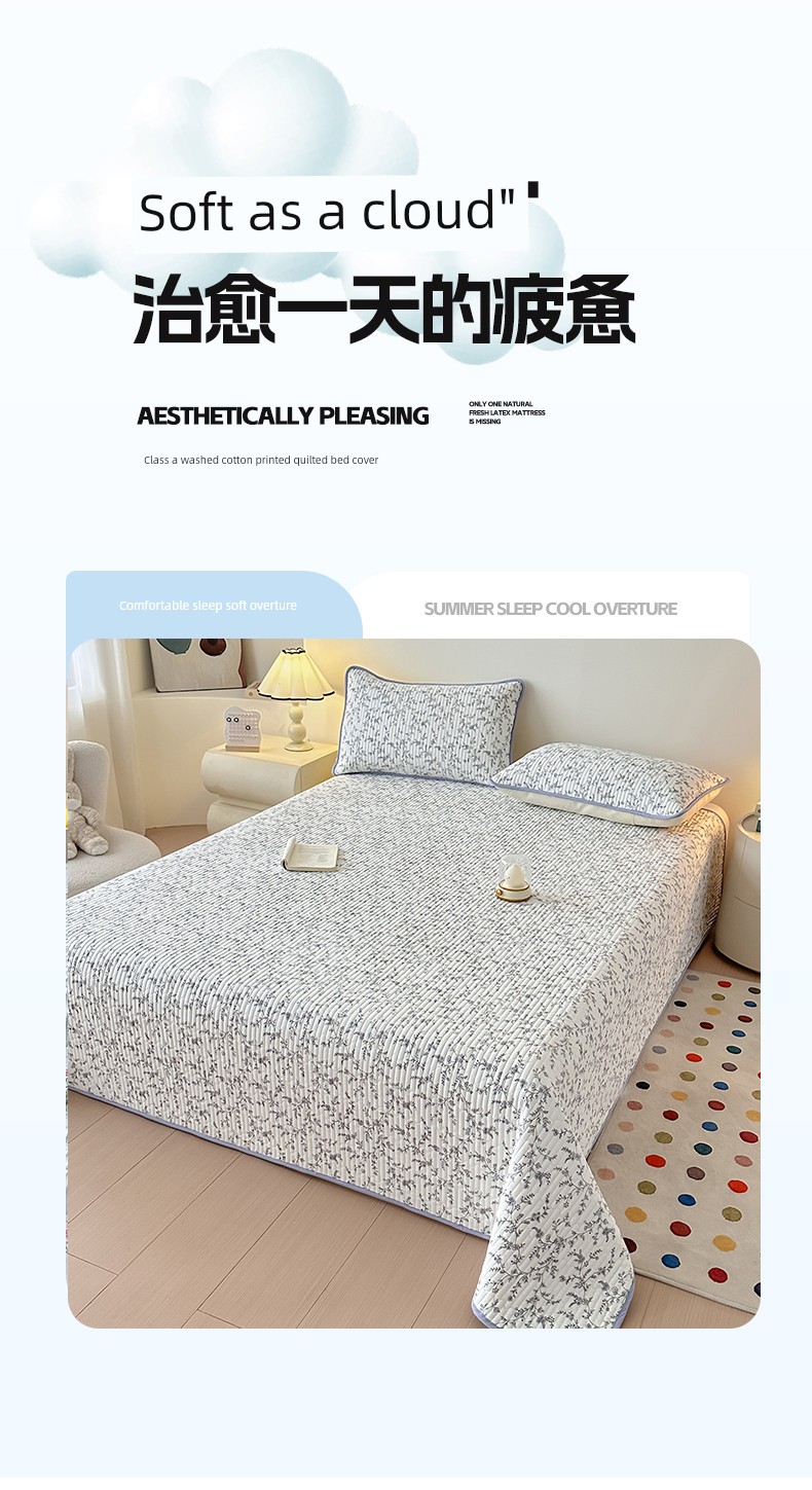 Washed Cotton Bed Cover Single Piece, Class a Maternal and Infant Grade, Suitable for All Seasons, Tatami Non-Slip Quilted Thick Bed Sheet, Single Three-Piece Set 3