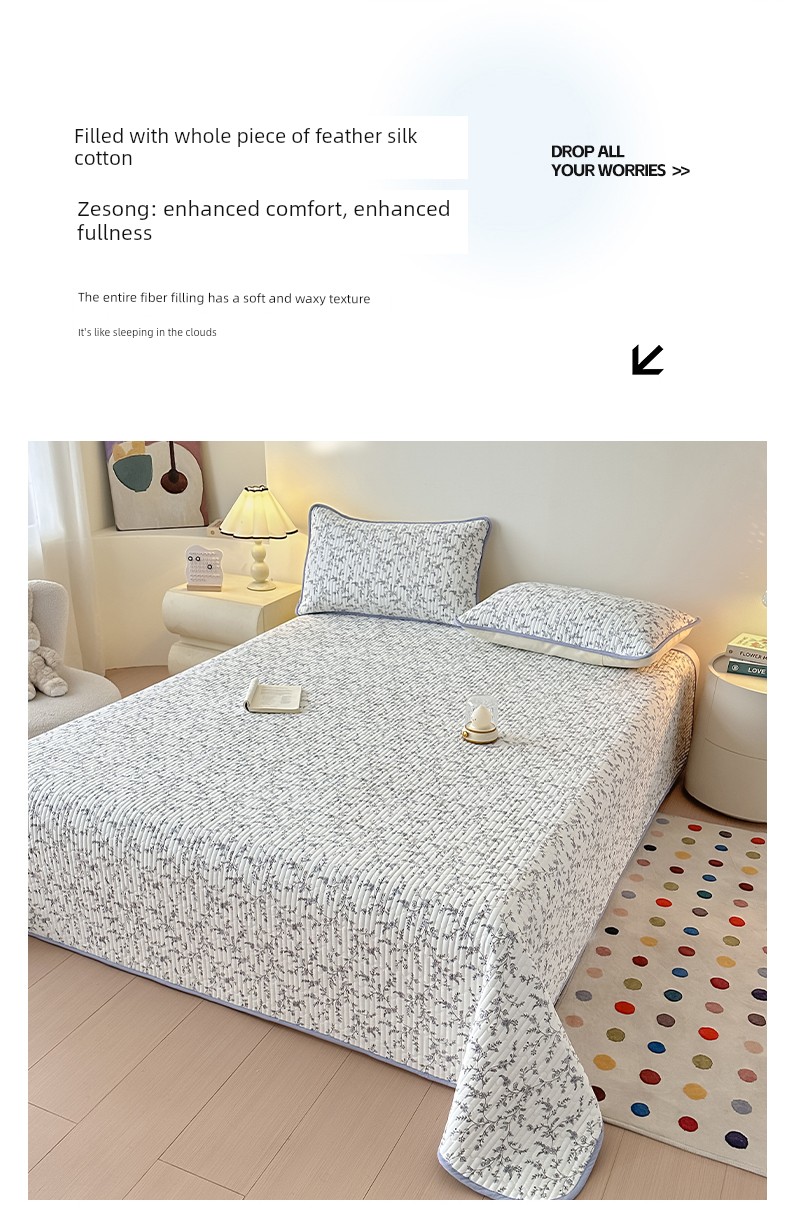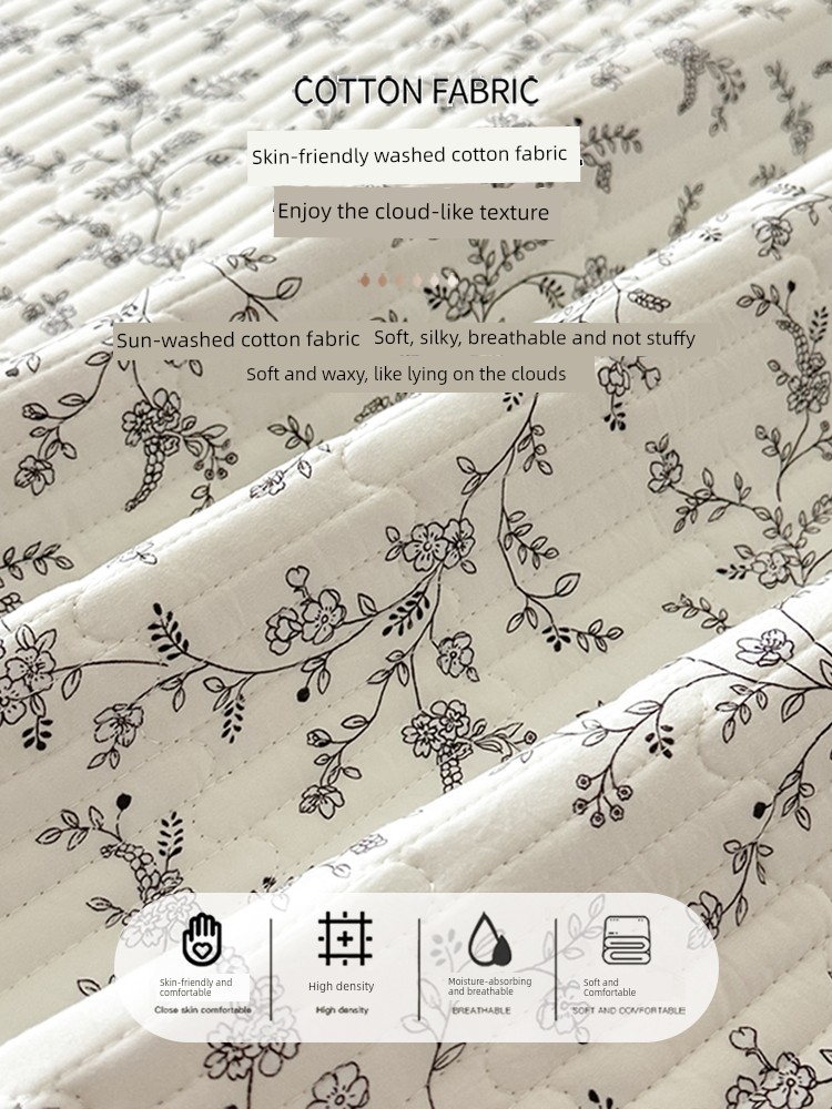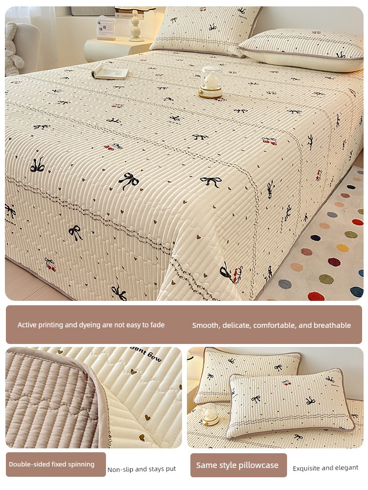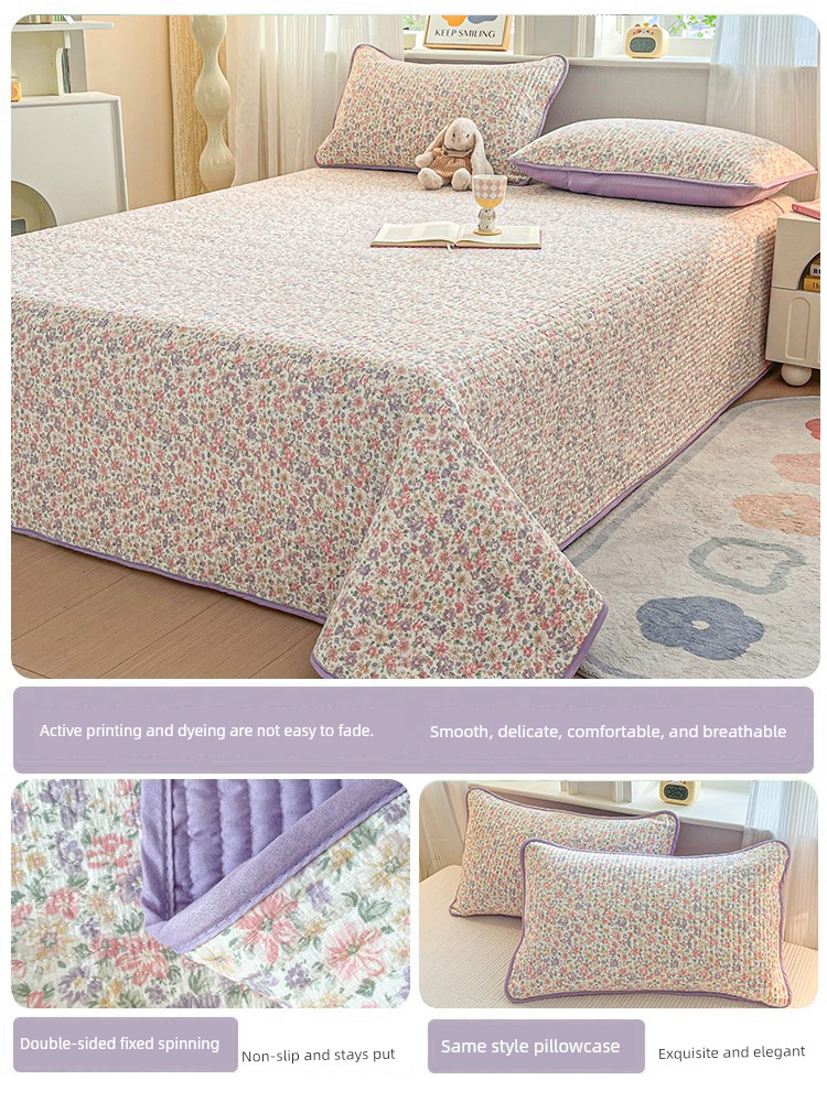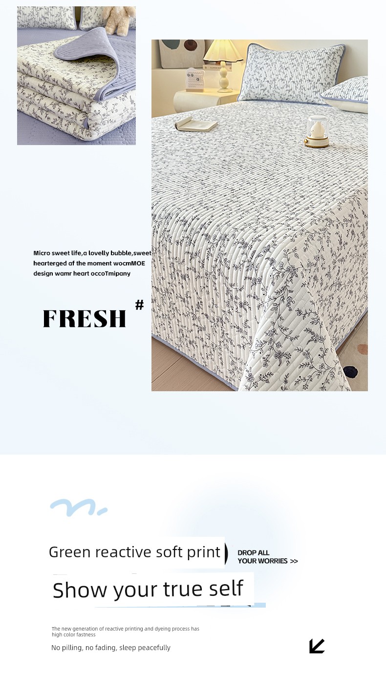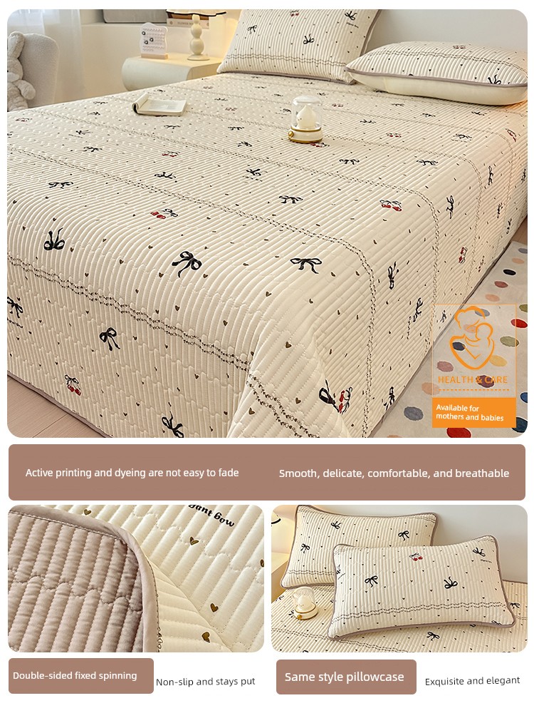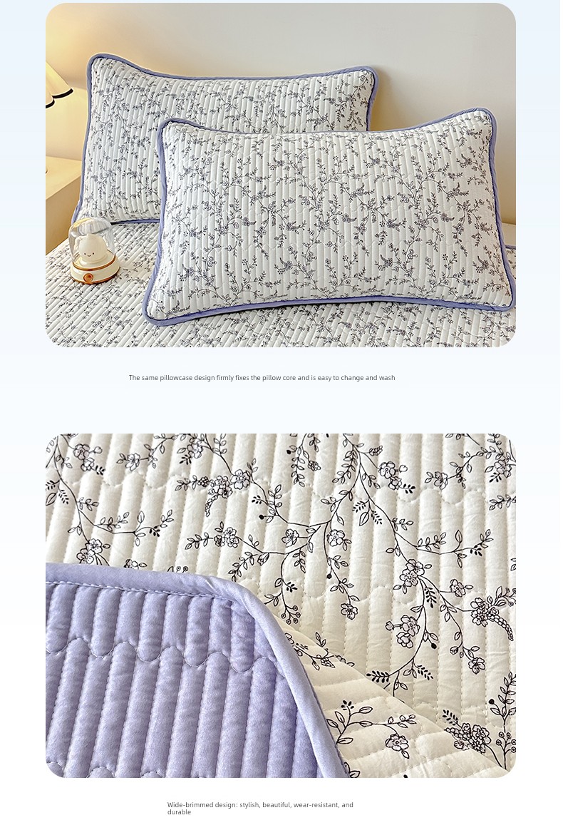 Washed Cotton Bed Cover Single Piece, Class a Maternal and Infant Grade, Suitable for All Seasons, Tatami Non-Slip Quilted Thick Bed Sheet, Single Three-Piece Set 3