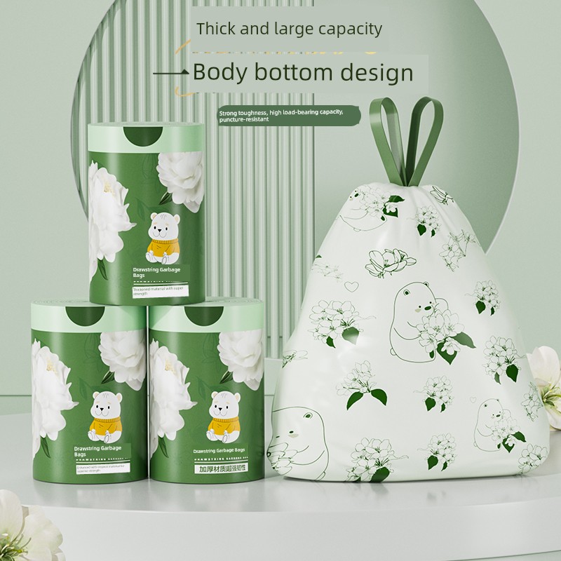 Bear Print Garbage Bags for Home Use, Thickened, Large, Tear-Free Drawstring Plastic Bags, Specifically for Kitchen Use