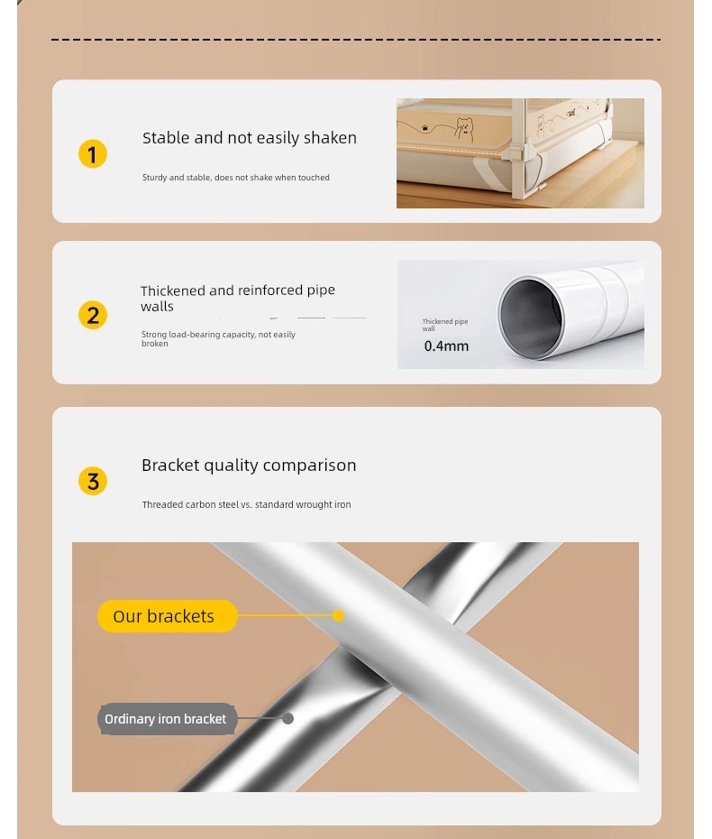 [Suitable for 150*200cm Double Bed] Class a Antibacterial·Installation-Free Bracket✅Wall Thickness Thickened by 30%