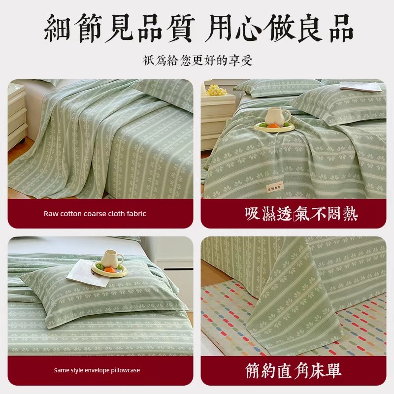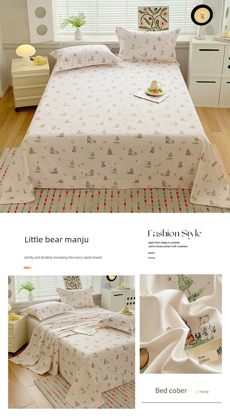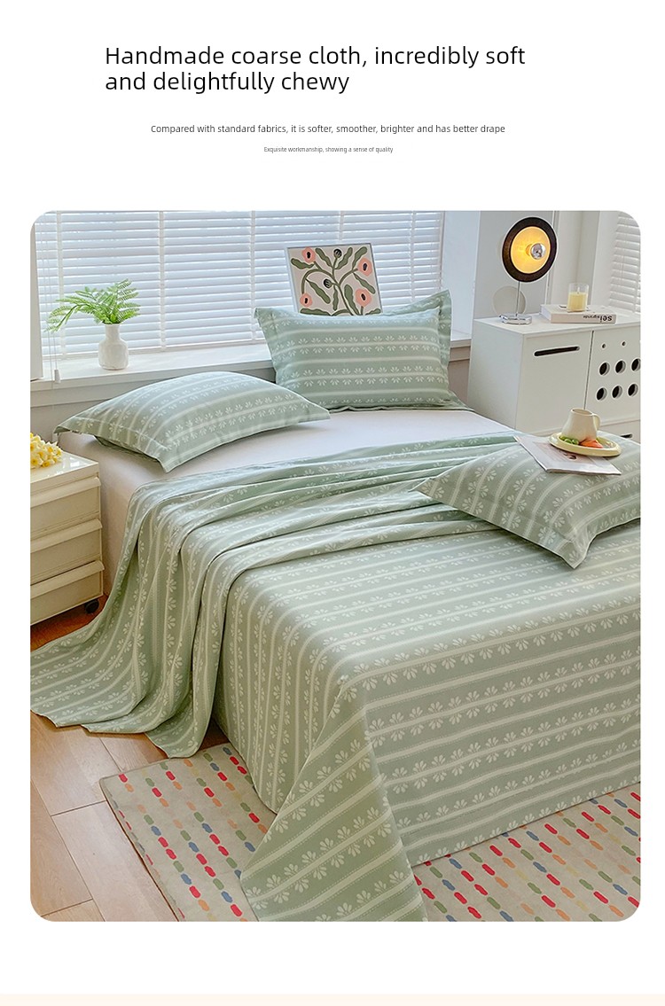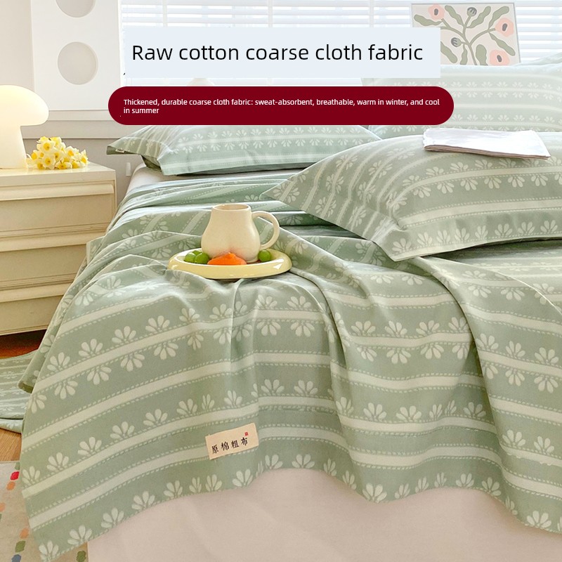 Muji Coarse Cotton Bed Sheet Single Piece Thickened Raw Cotton Kang Sheet Pillowcase Cotton and Linen Three-Piece Set Single Person All-Season Use