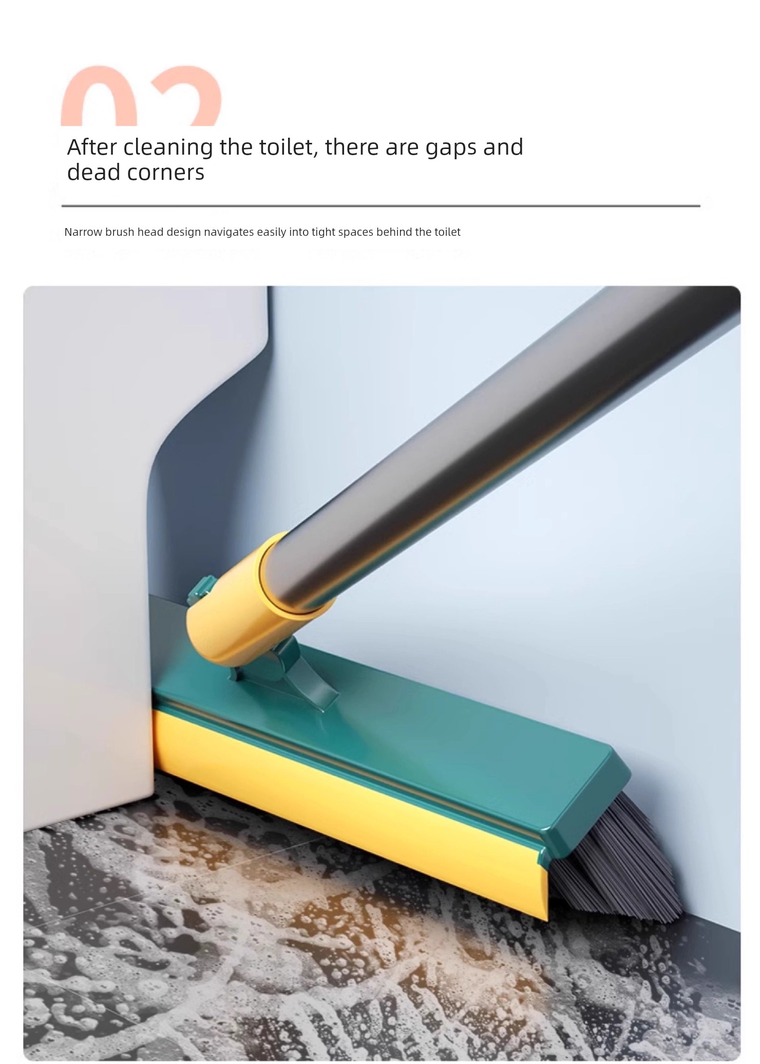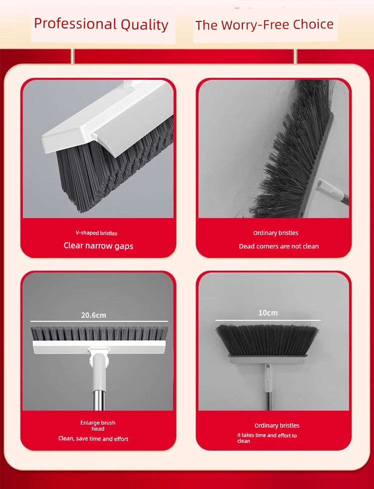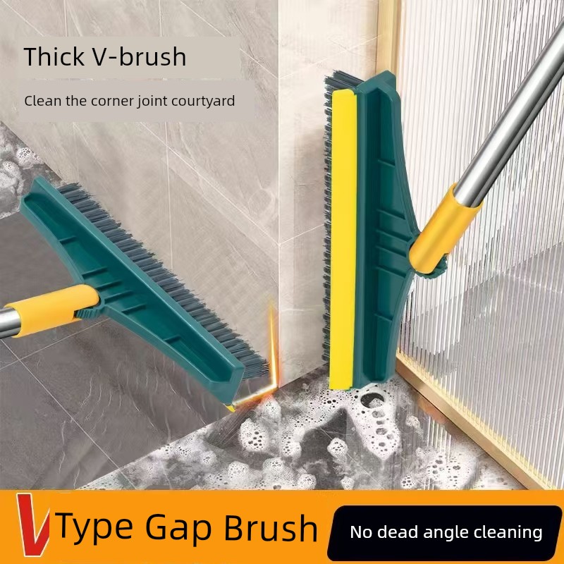 Bathroom Floor Brush Bathroom Cleaning Brush Long Handle Bristle Gap Brushes Multi-Functional No Dead Angle Wiper Two-in-One