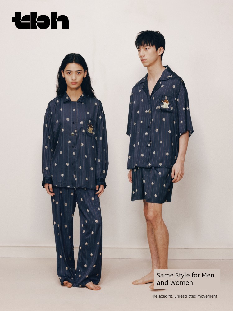 [Same Style as Gong Jun] Tbh Brutalist Home Wear Starlight Satin Loungewear Set, Suitable for All Seasons, Can Be Worn Outside, Couple Pajamas