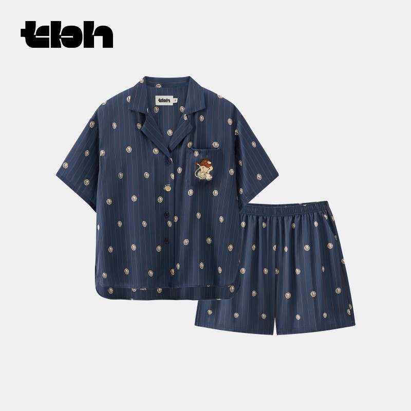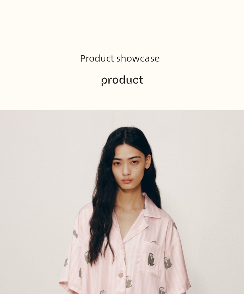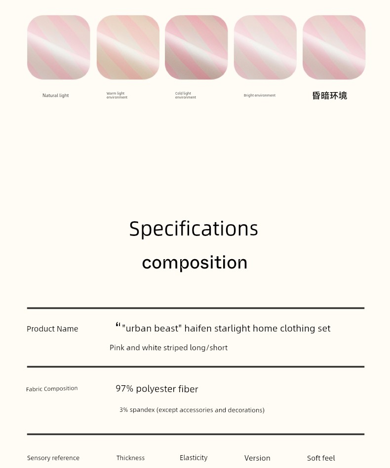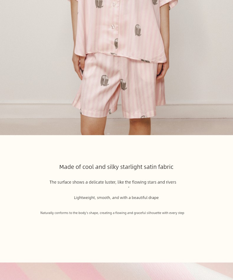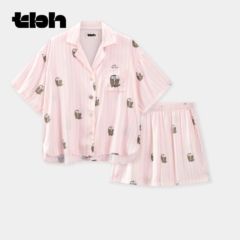 “都市野兽”海獭星光缎短款家居服套装 粉白条纹