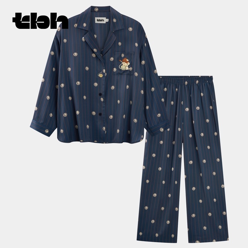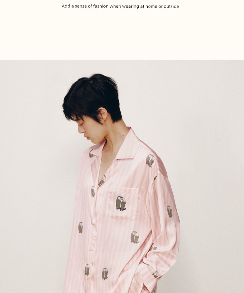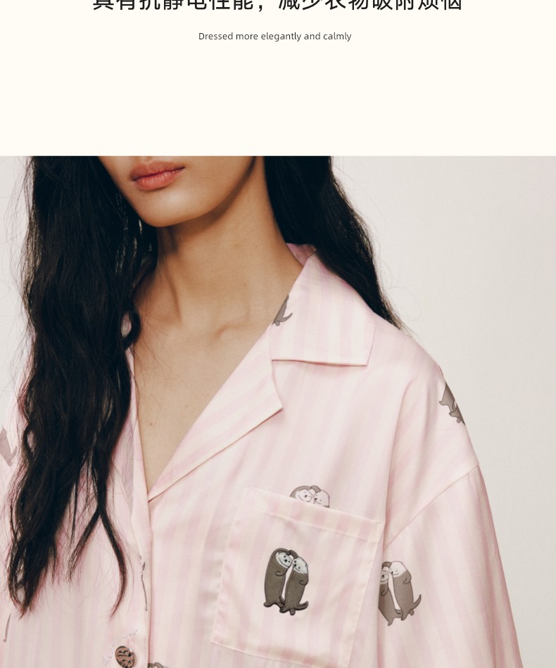 “都市野兽”海獭星光缎长款家居服套装 粉白条纹