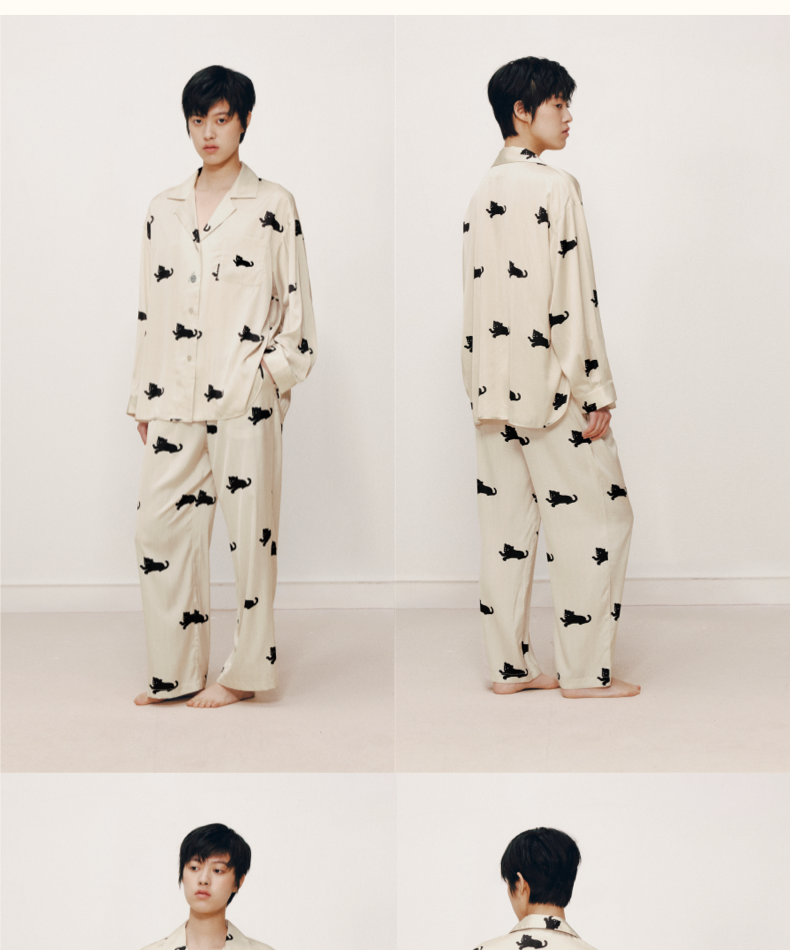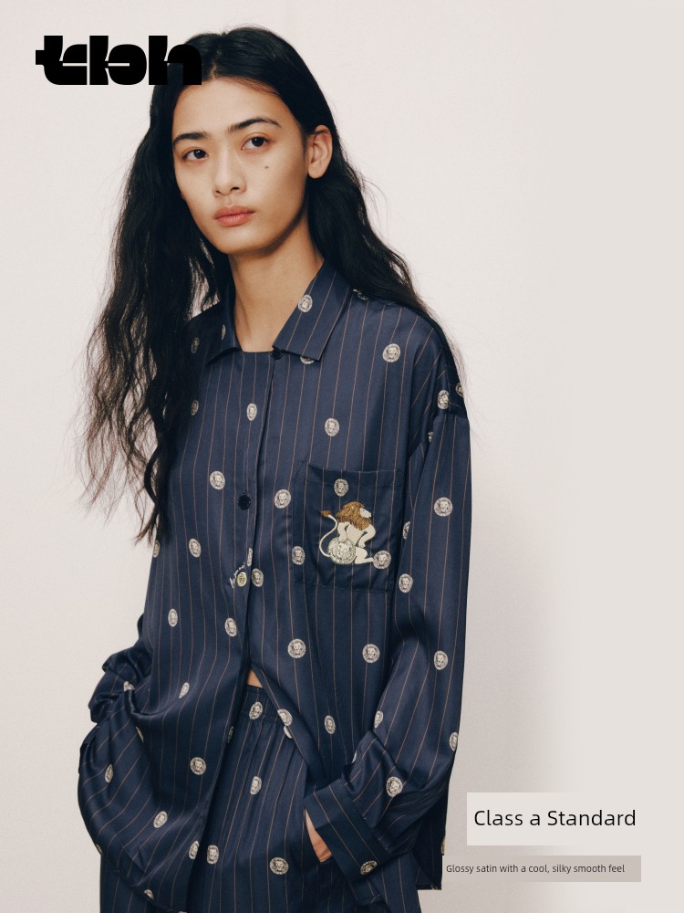 “都市野兽”狮子星光缎长款家居服套装 许愿币