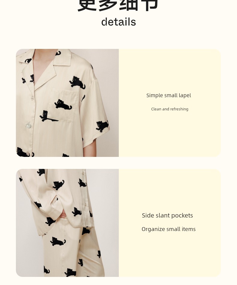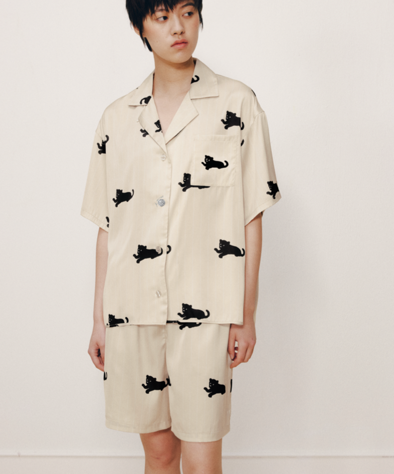 “都市野兽”黑豹星光缎短款家居服套装 驼金色