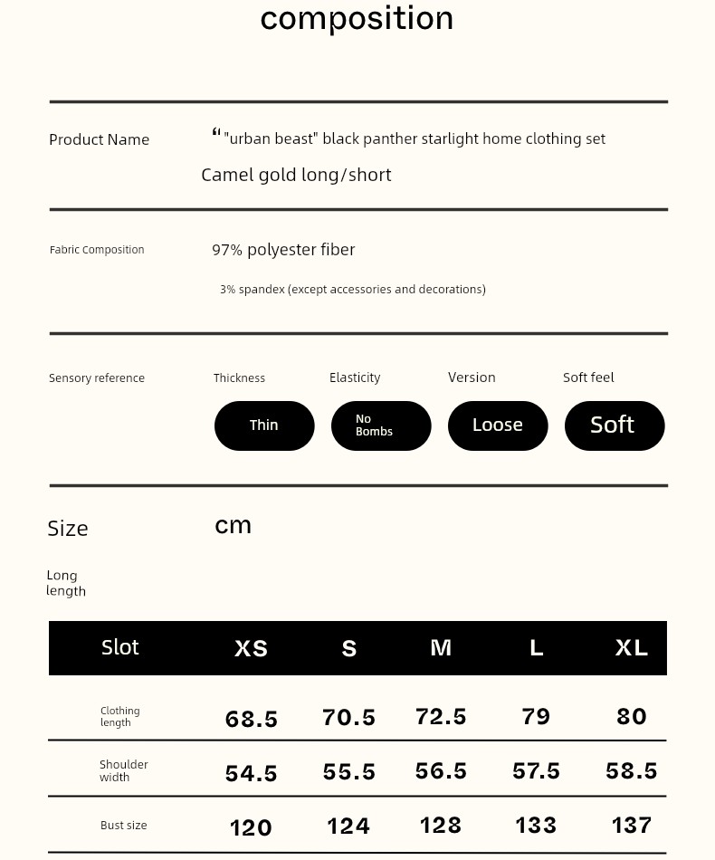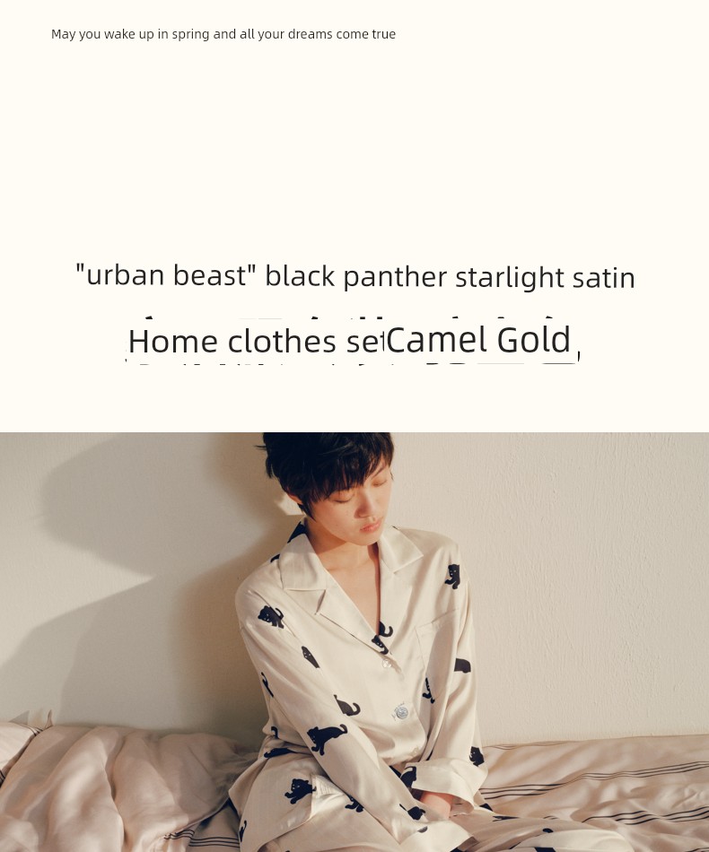 “都市野兽”黑豹星光缎长款家居服套装 驼金色