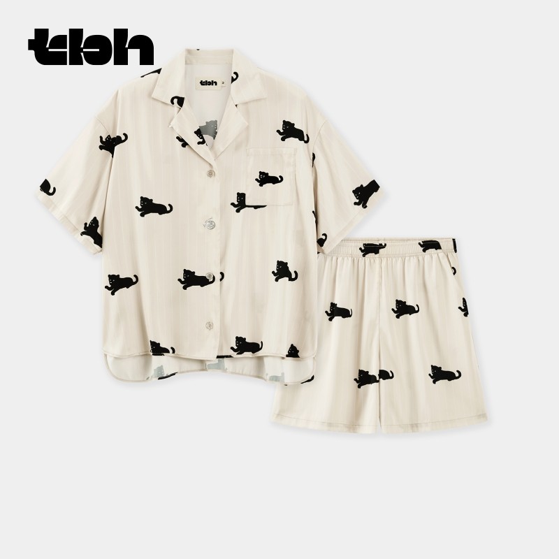 “都市野兽”狮子星光缎短款家居服套装 许愿币