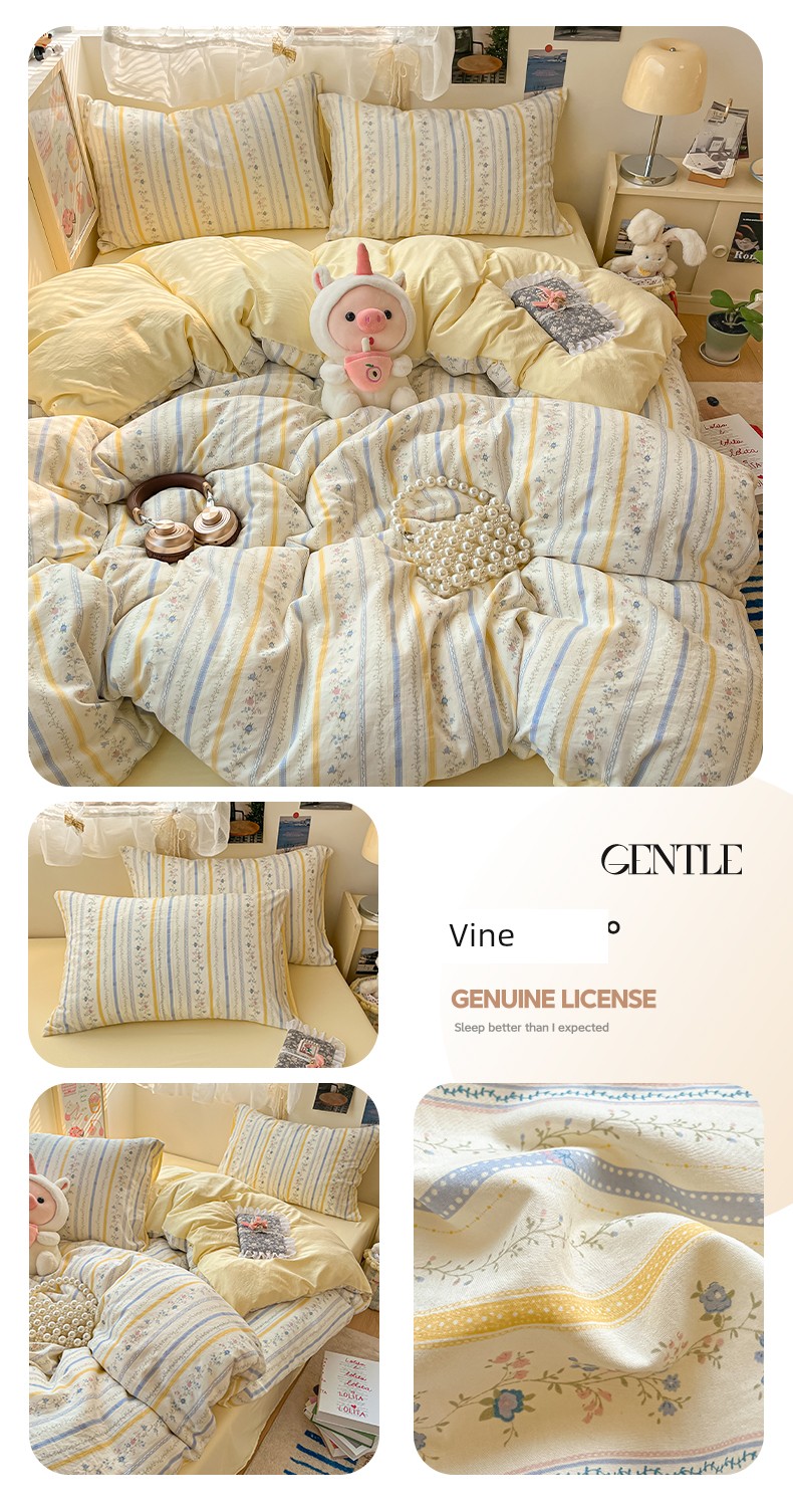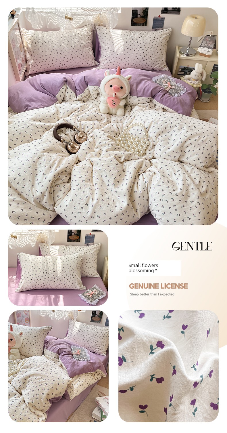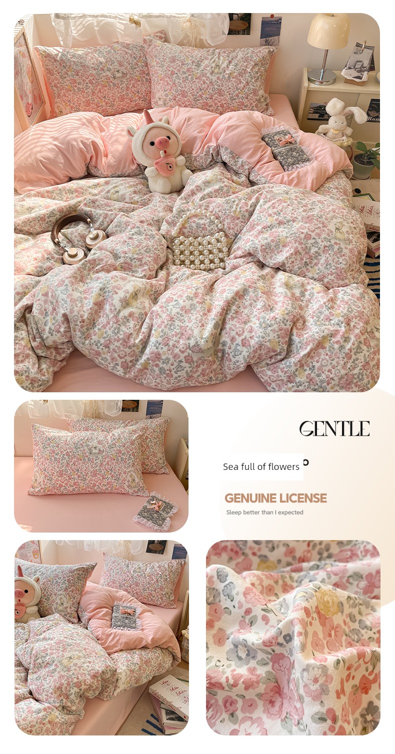 Class A Pure Cotton Four-Piece Cotton Bedding 2025 New Arrival Fresh Floral Quilt Cover Dormitory Students Three-Piece Set 4