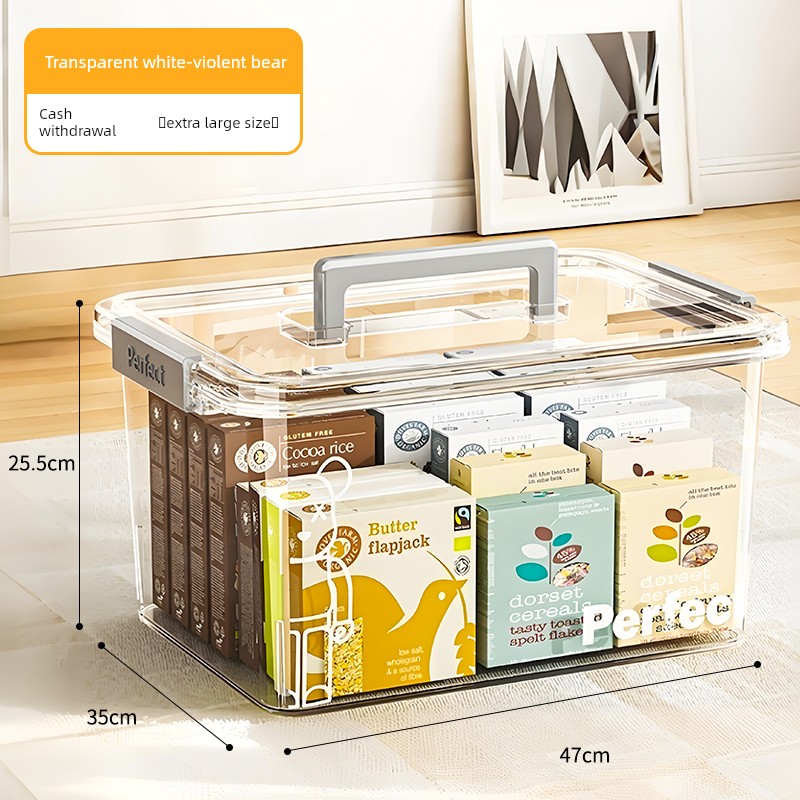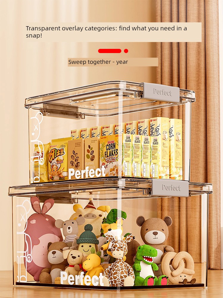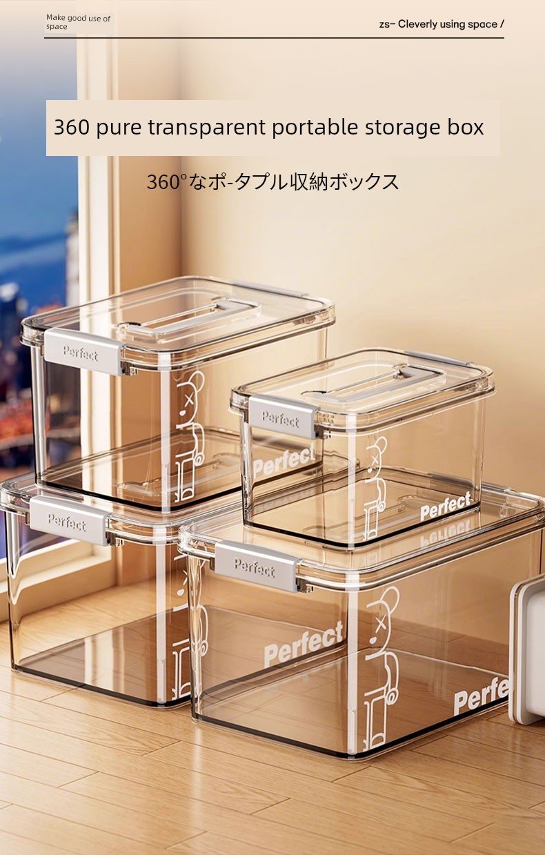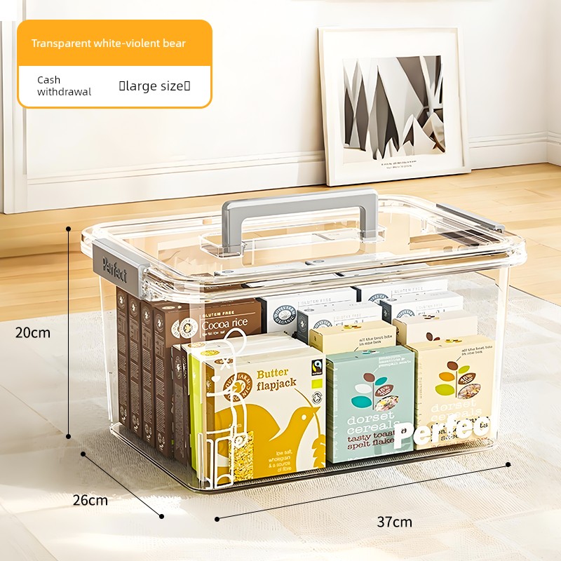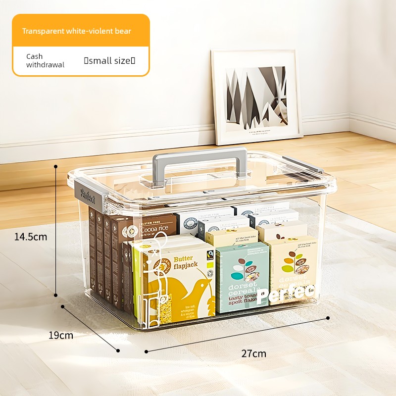 Japan Satchel Transparent Storage Box For Home Thickened Desktop Large Capacity Snack Toy Book Plastic Storage Basket