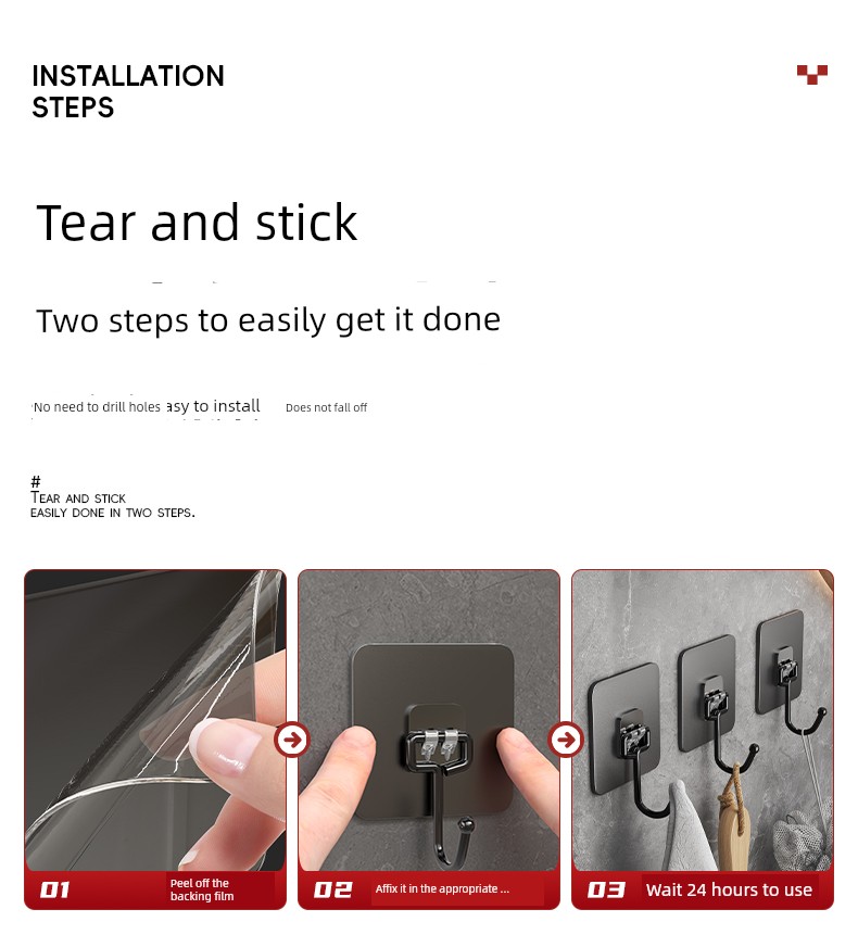 Shopkeeper's Recommendation⭐[Pack of 20] Increase Size|Strong Adhesive Backing + Stainless Steel Solid Large Hook