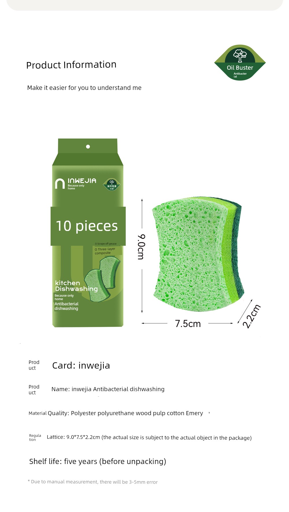 Inweijia Dishwashing Spong Mop Bowl Brushing Appliance Sponge Wipe Cellulose Sponge Washing Pot Scouring Sponge Kitchen Dedicated