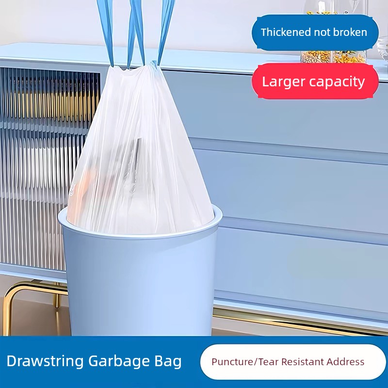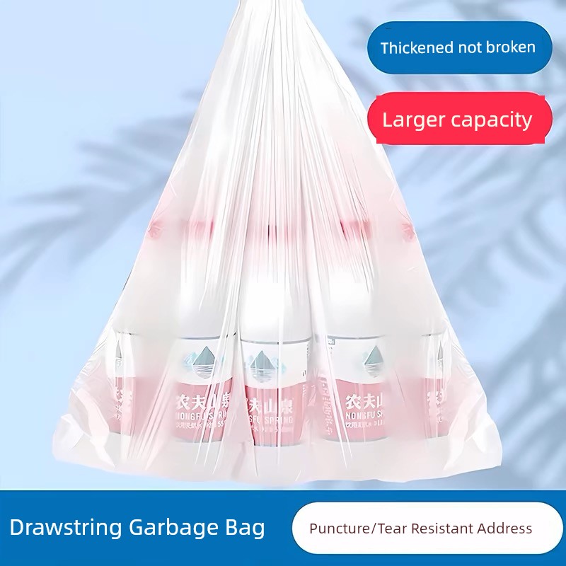 Thickened Drawstring Garbage Bag For Home Portable Large White Portable Automatic Enclosure Kitchen Cleaning Plastic Bag