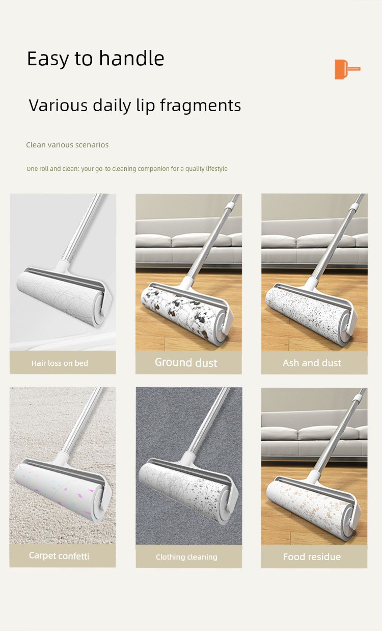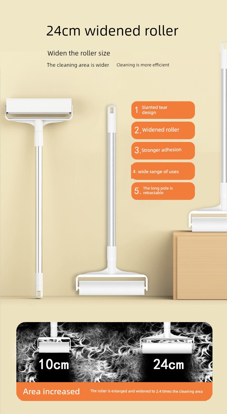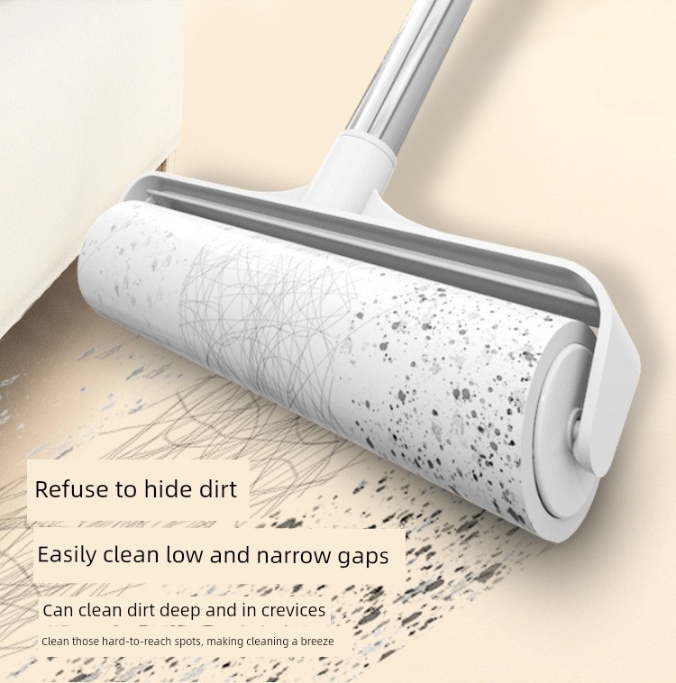 Lint Roller with Long Handle, Long Rod Roller Brush for Floor Cleaning, Dust Removal Brush, Lint Remover Tool