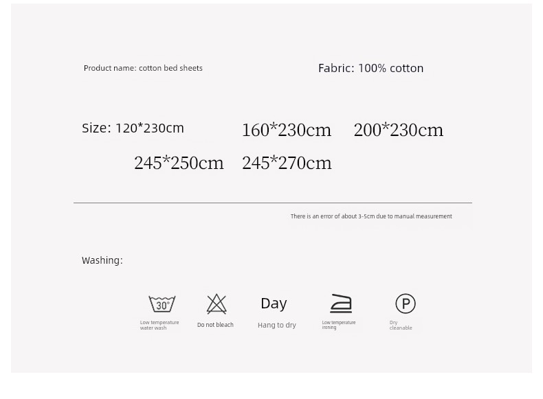 [Single Bed Sheet] 230X250Cm [Suitable for 1.8m Beds]