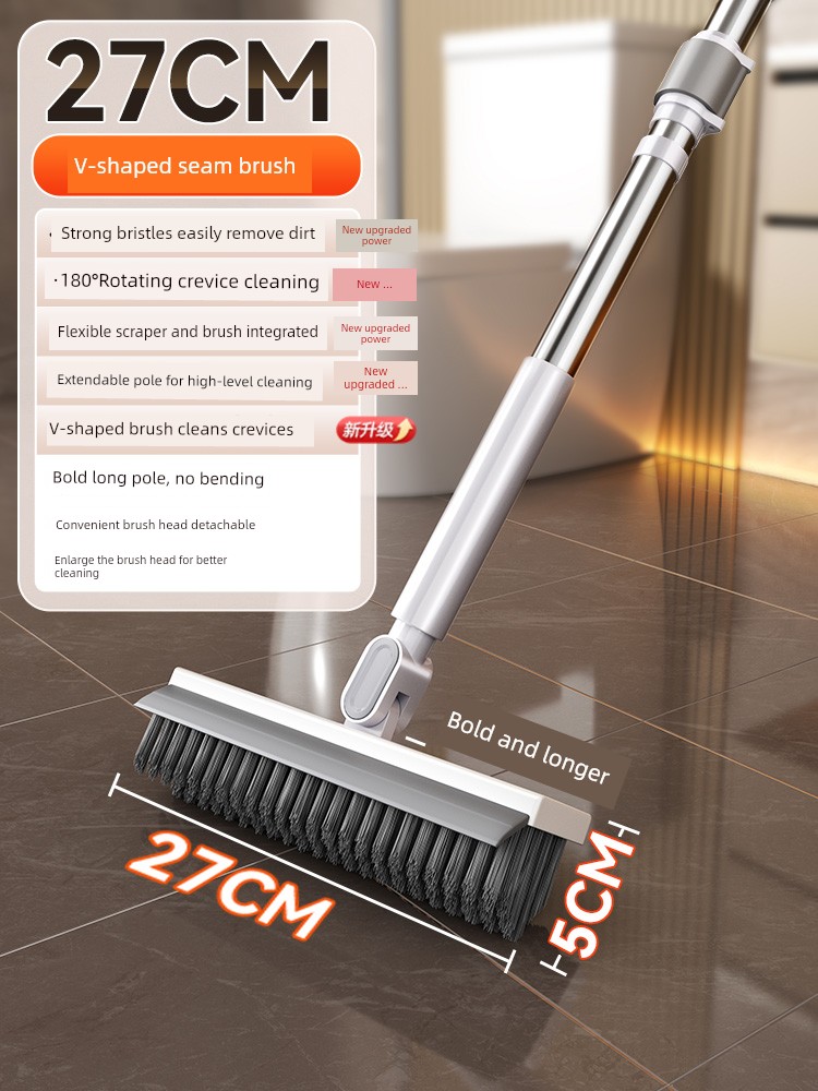 Crevice Brush, Bathroom Cleaning Brush, Special Floor Brush for Bathrooms, Long-Handled Brush, Hard-Bristled Floor Brush for Cleaning Toilet Floor Gaps