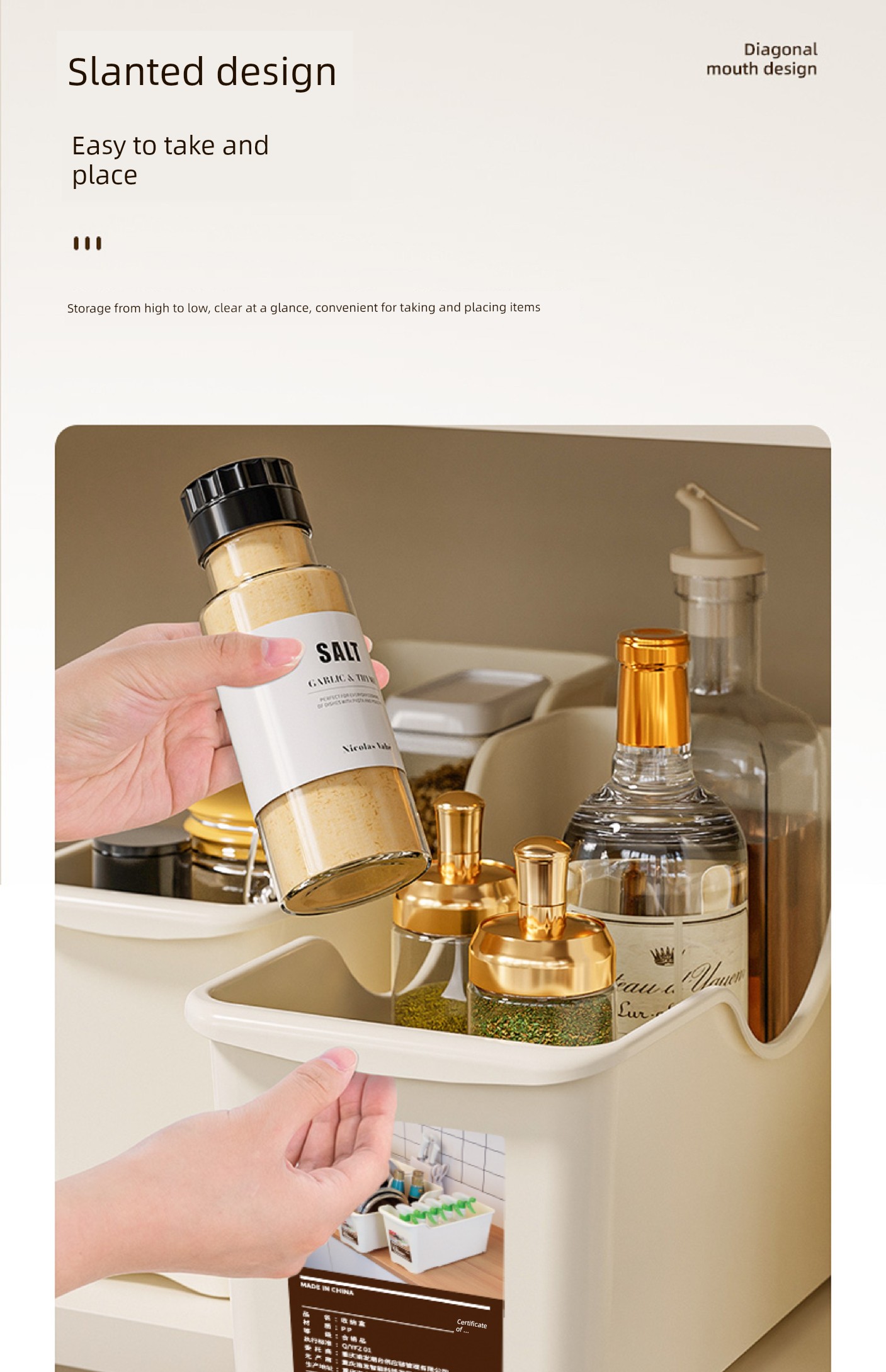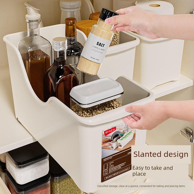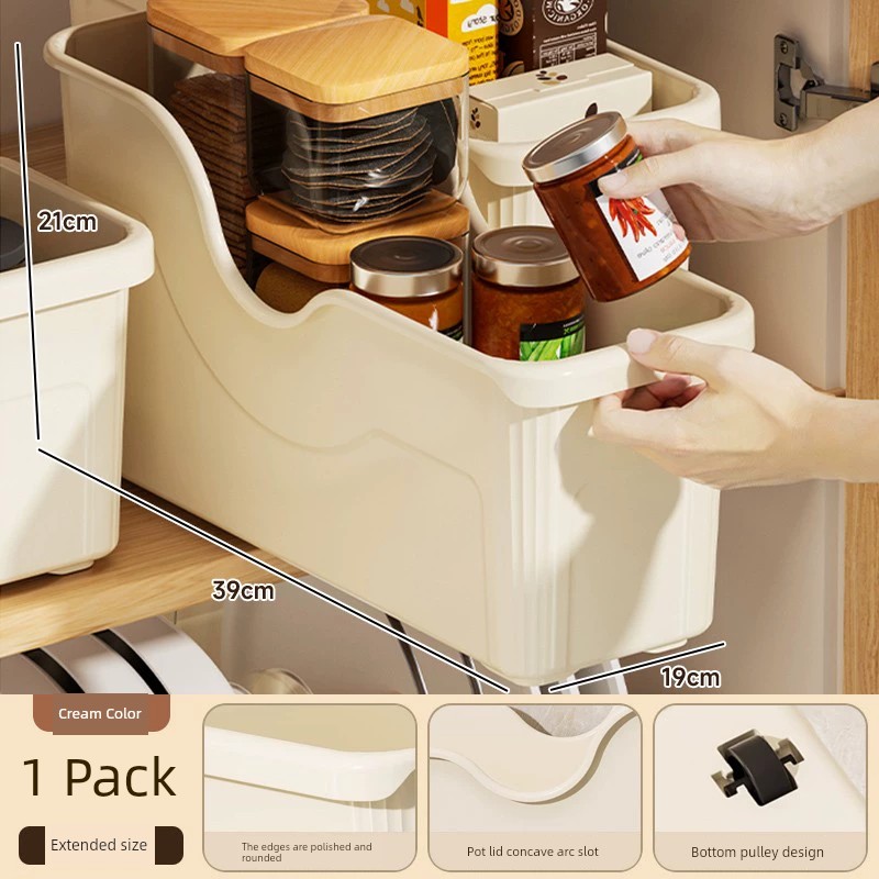Kitchen Pot Storage Box Organizing Box Pot Lid Seasoning with Pulley Lower Sink Cabinet Storage Multifunctional Storage Rack