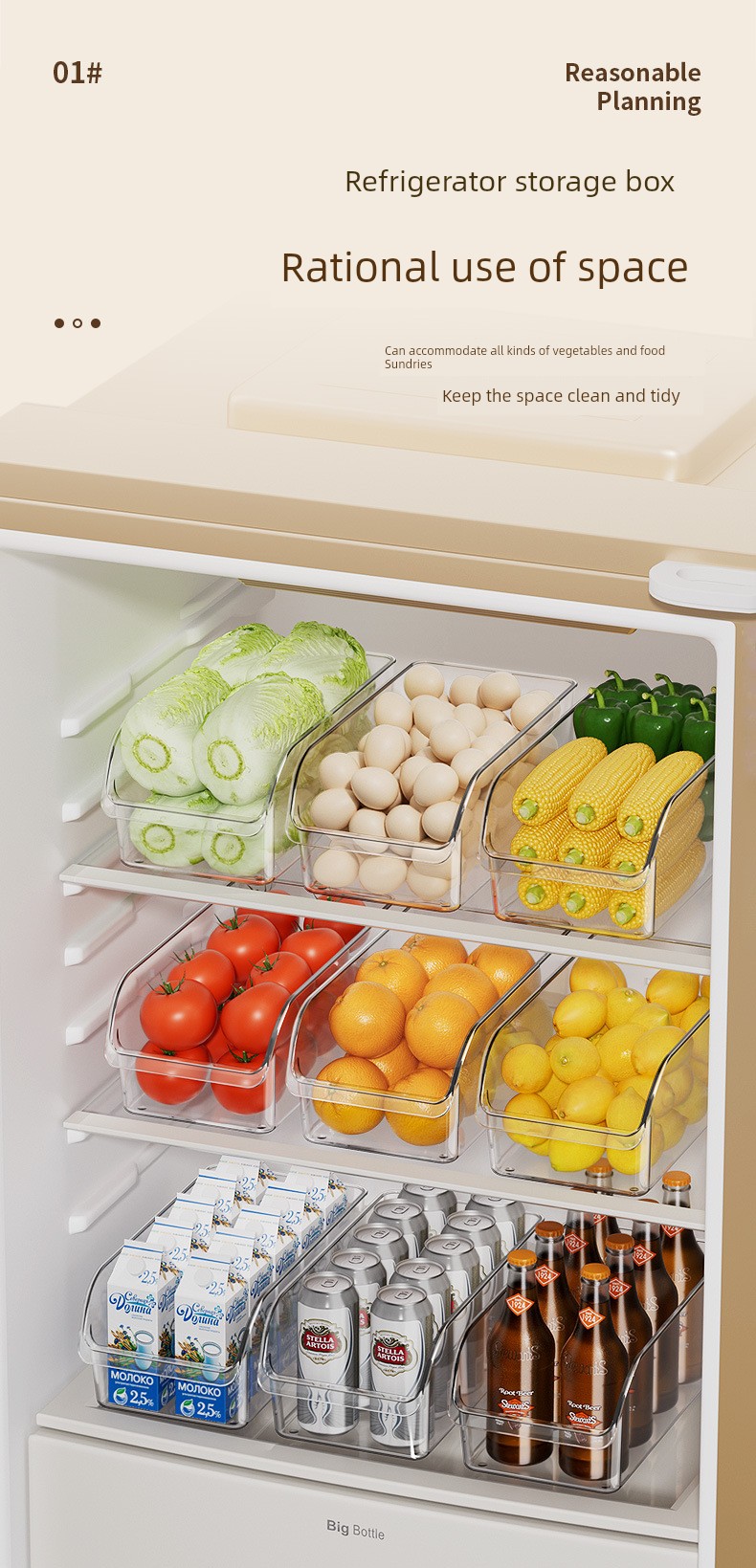 Refrigerator Storage Box Drawer Storage Crisper Food Grade Kitchen Special Vegetable Egg Frozen Storage Handy Gadget
