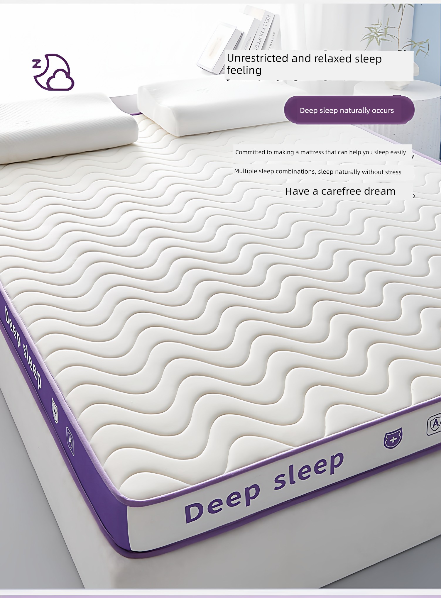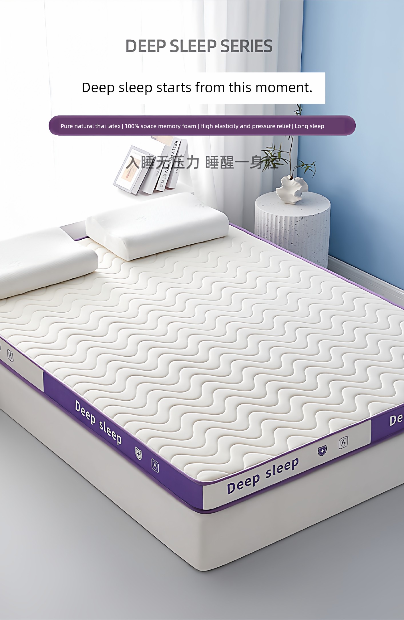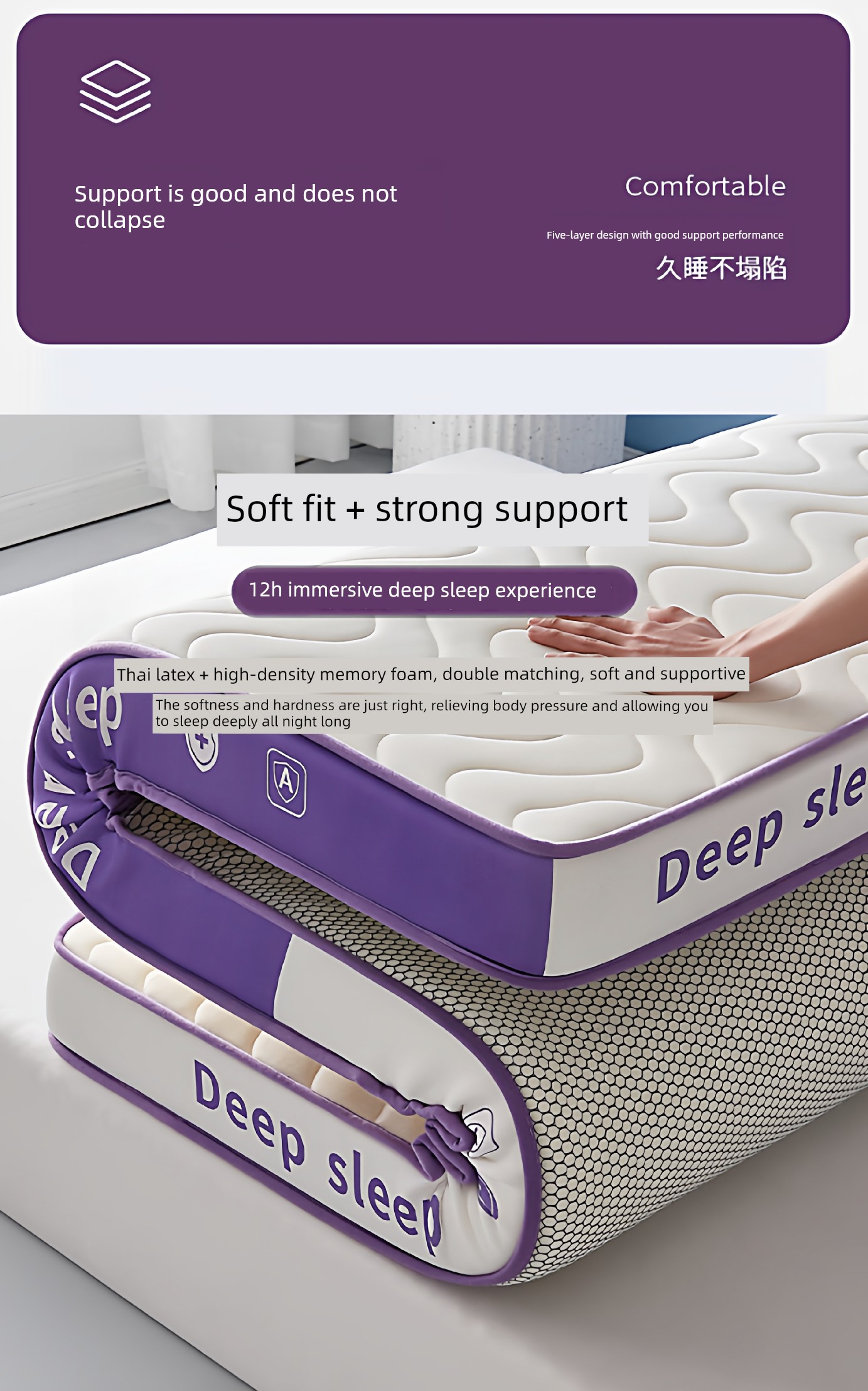 [Deep Sleep 3.0] Three-Dimensional Double Combination Deep-White and Purple/About 9cm Thick [Real Natural Latex/Memory Foam Neck Protection Layer Imported from Thailand]