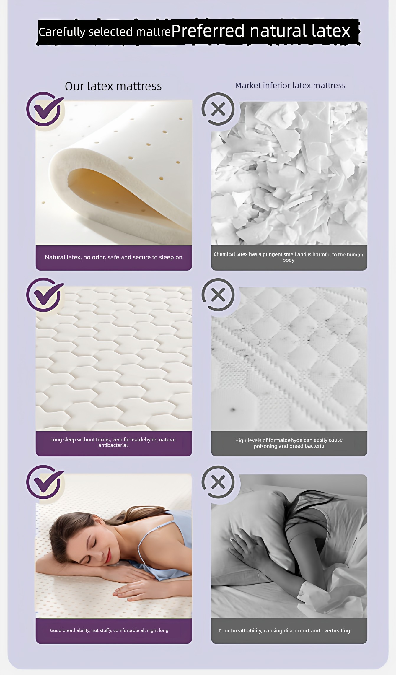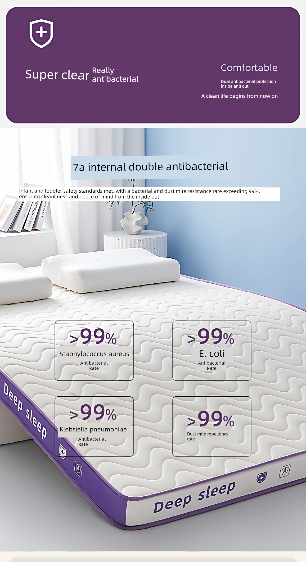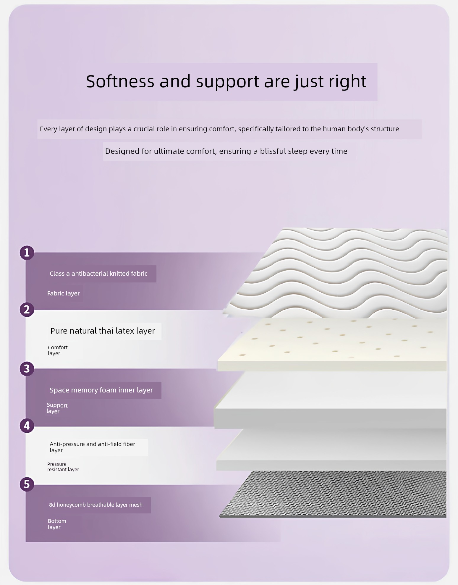 [Deep Sleep 3.0] Three-Dimensional Double Combination Deep-White and Purple/About 9cm Thick [Real Natural Latex/Memory Foam Neck Protection Layer Imported from Thailand]