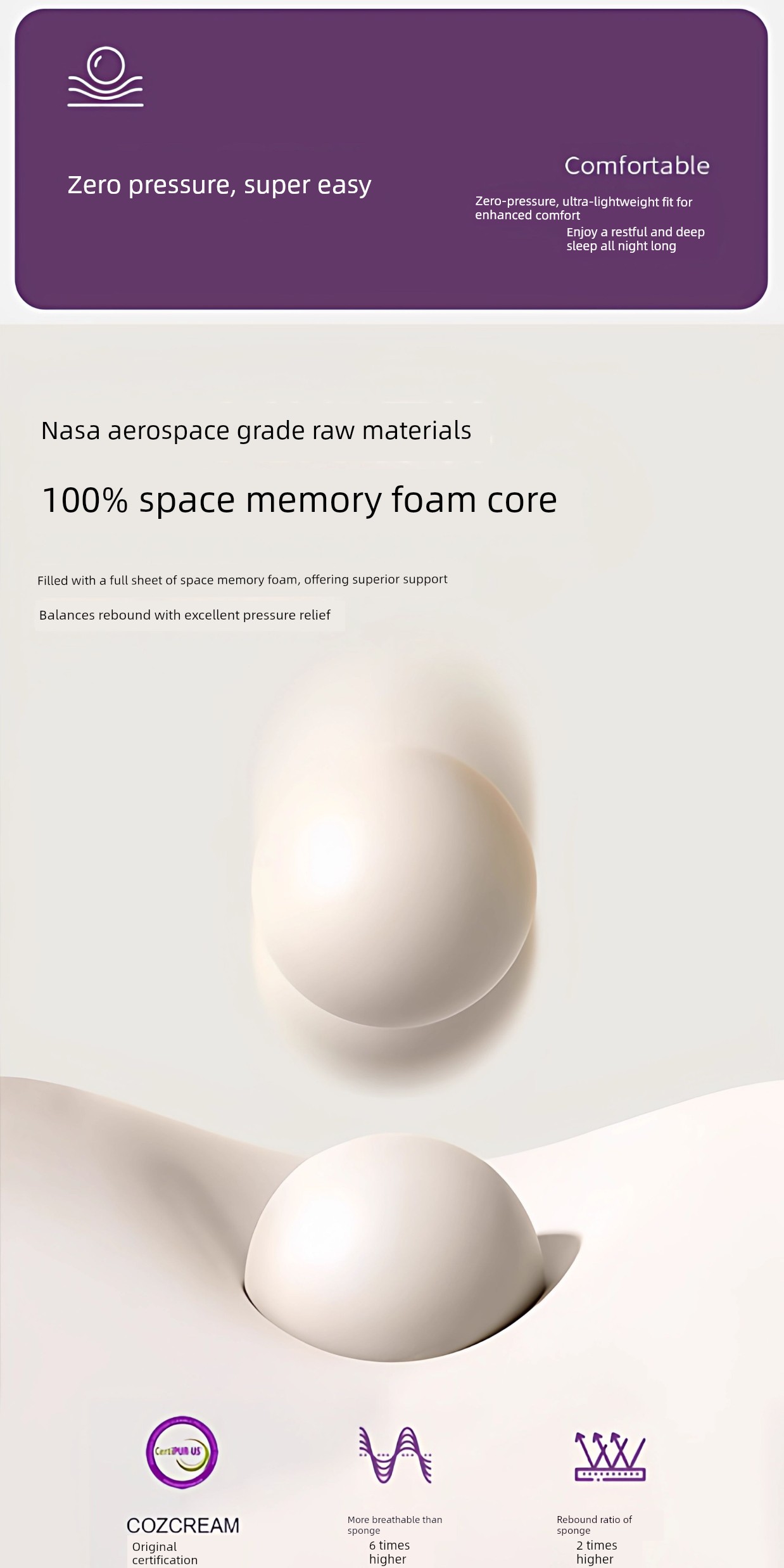 [Deep Sleep 3.0] Three-Dimensional Double Combination Deep-White and Purple/About 6cm Thick [Real Natural Latex/Memory Foam Neck Protection Layer Imported from Thailand]