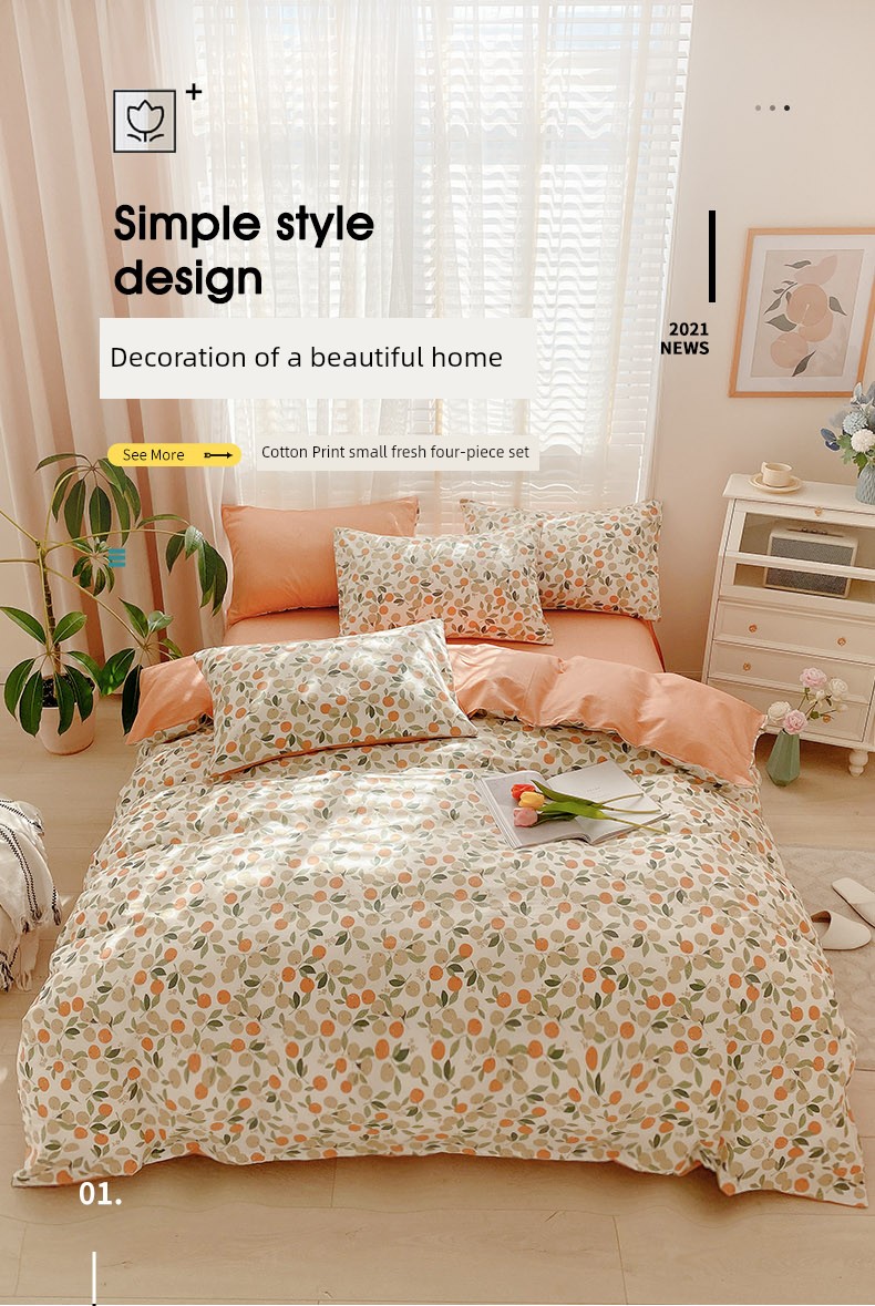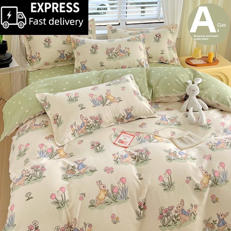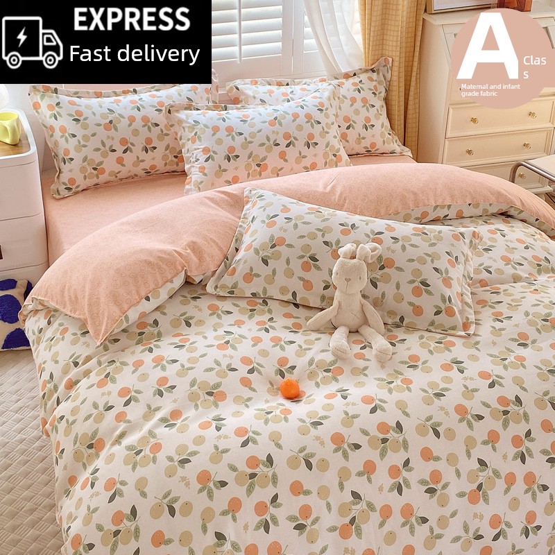 All Year Round Four-Piece Set All Cotton Pure Cotton New Arrival Thick Duvet Cover Bed Sheets Student Dormitory Three-Piece Set Minimalist Comfortable Bedding