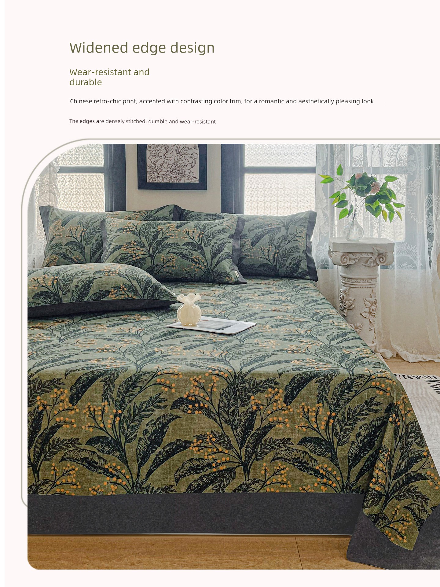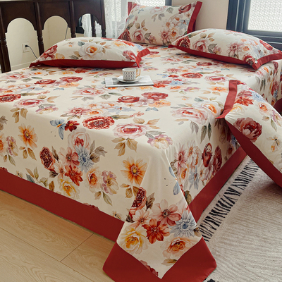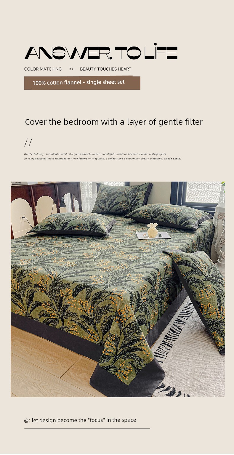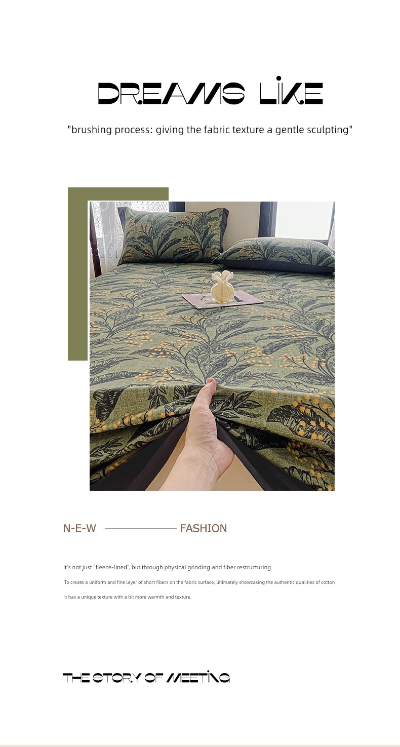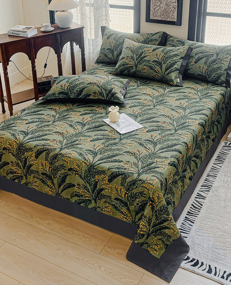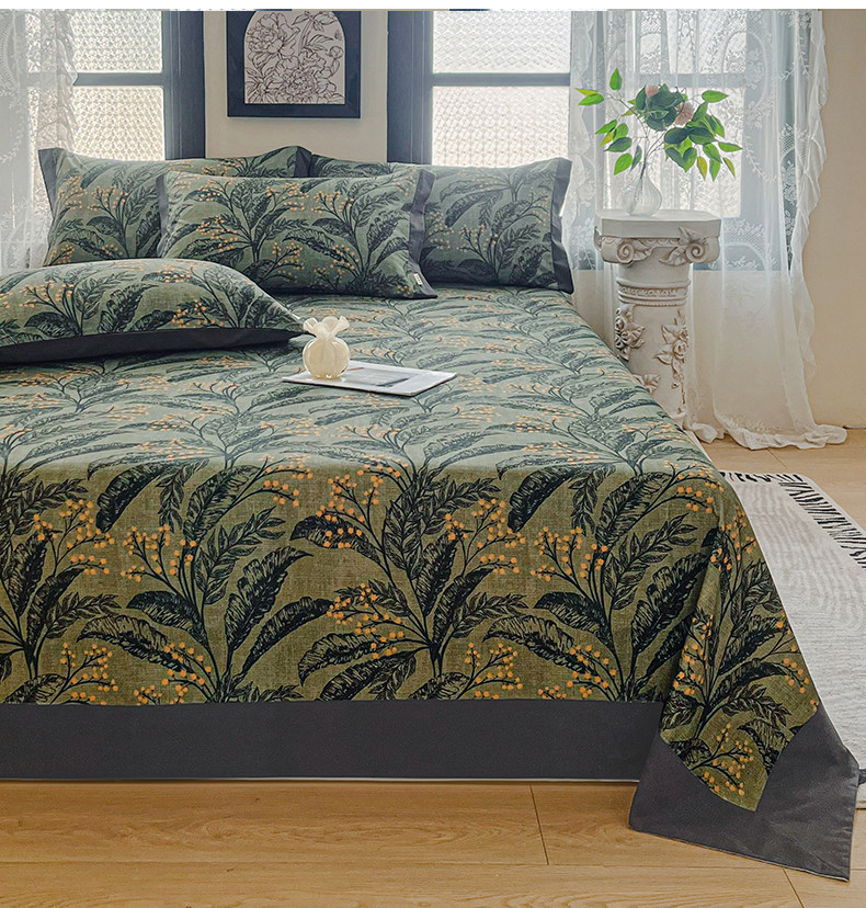 Light Luxury Retro Pure Cotton Brushed Bed Sheet Single Piece, High-End Feel All-Cotton Fitted Sheet for Double Bed, Three-Piece Set