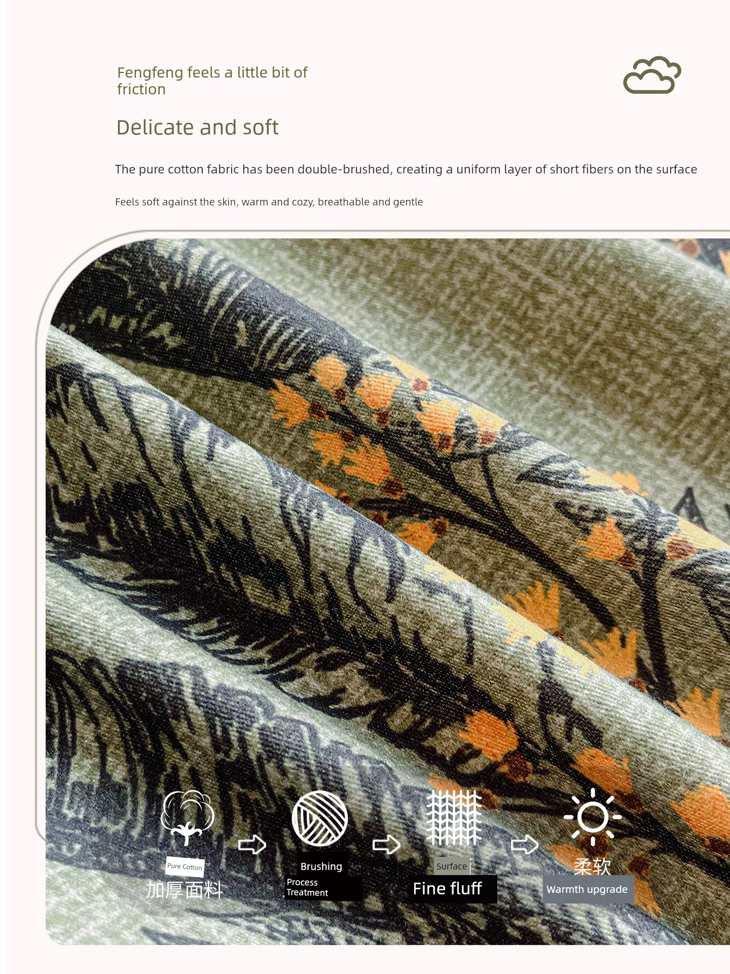 Misty Whisper [100% Pure Cotton Flannel Fabric, Thickened Wide Brim, Soft and Cozy]