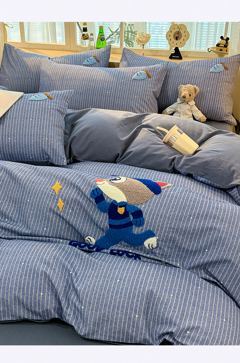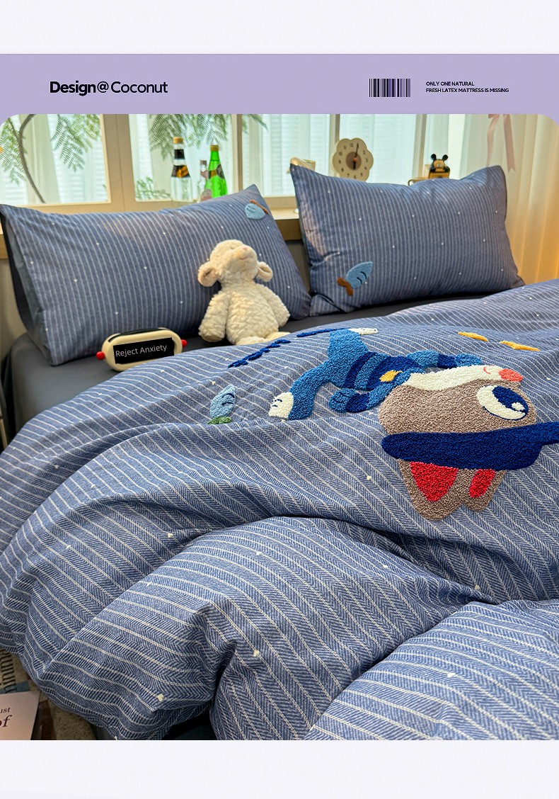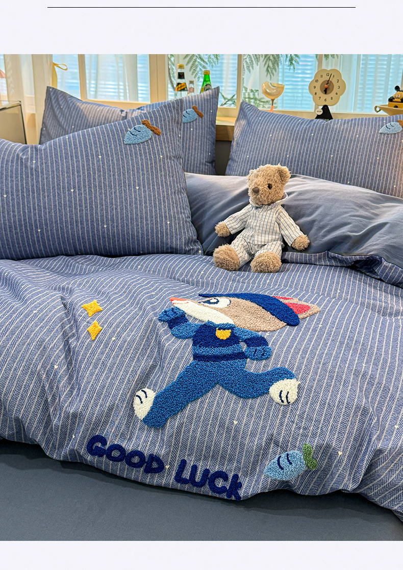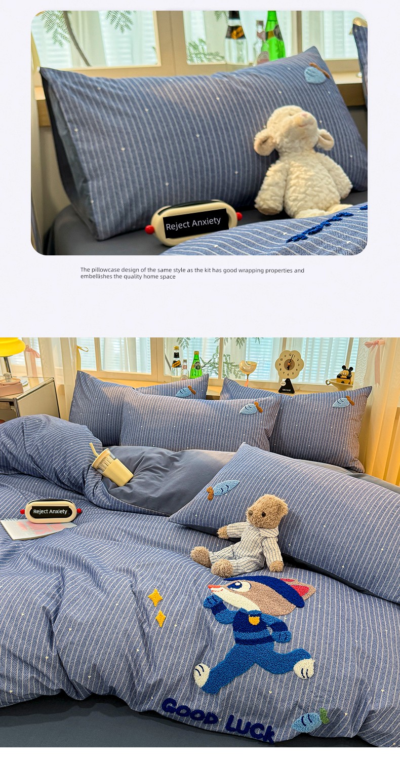 Class a Pure Cotton Brushed Bedding Four-Piece Set Children's Cartoon All-Cotton Embroidered Duvet Cover Bed Sheet Dormitory Bed Three-Piece Set 4