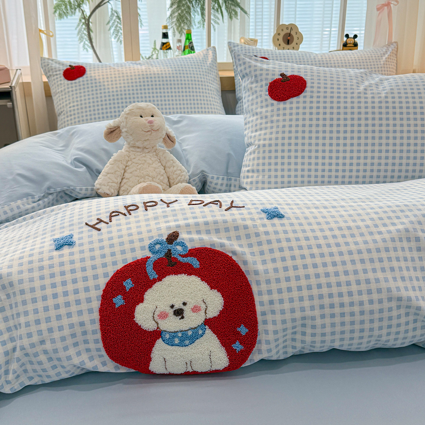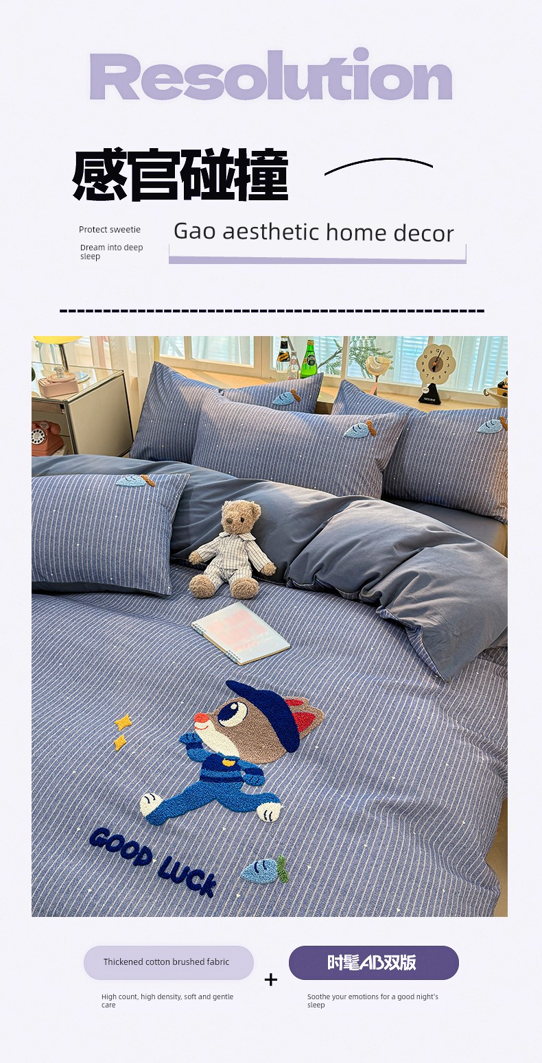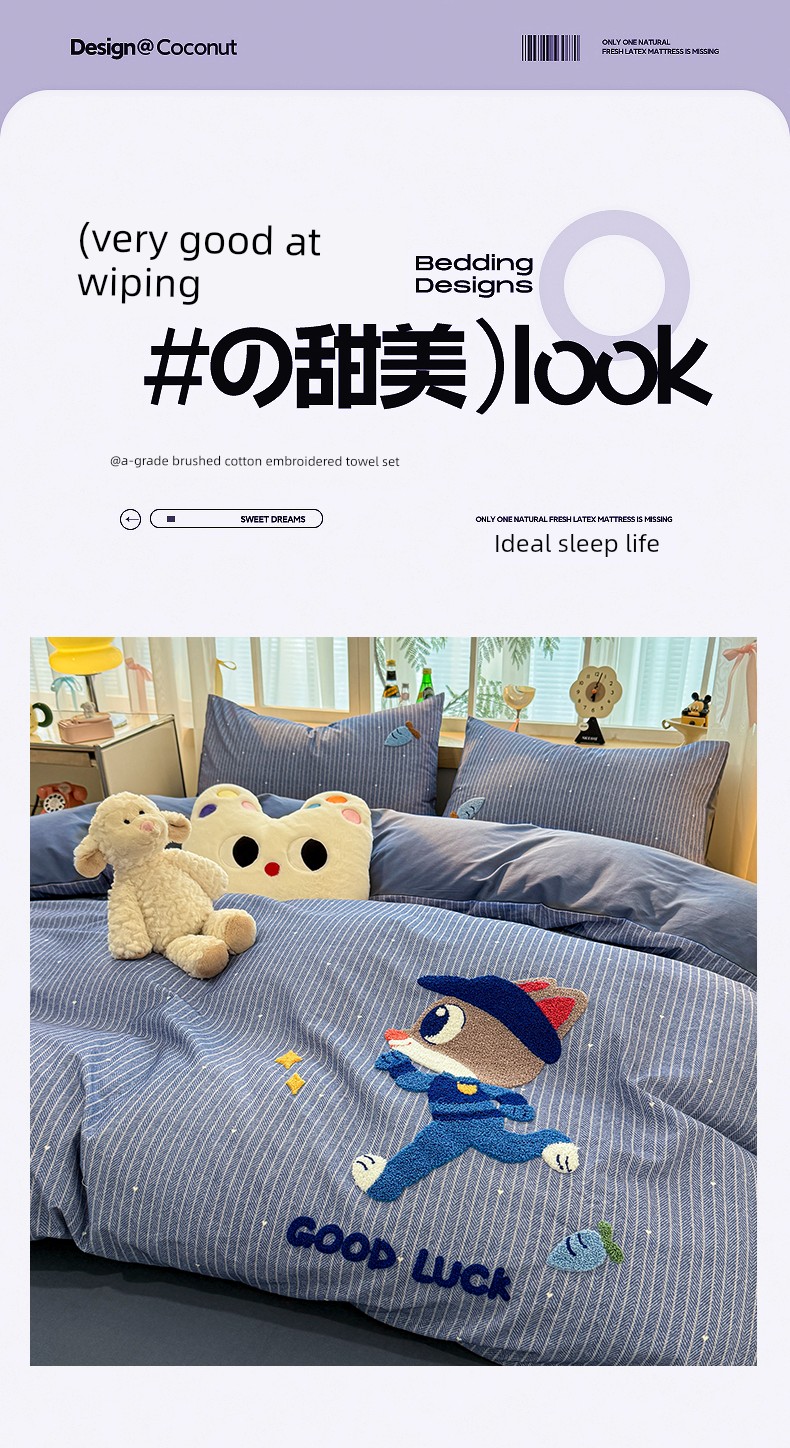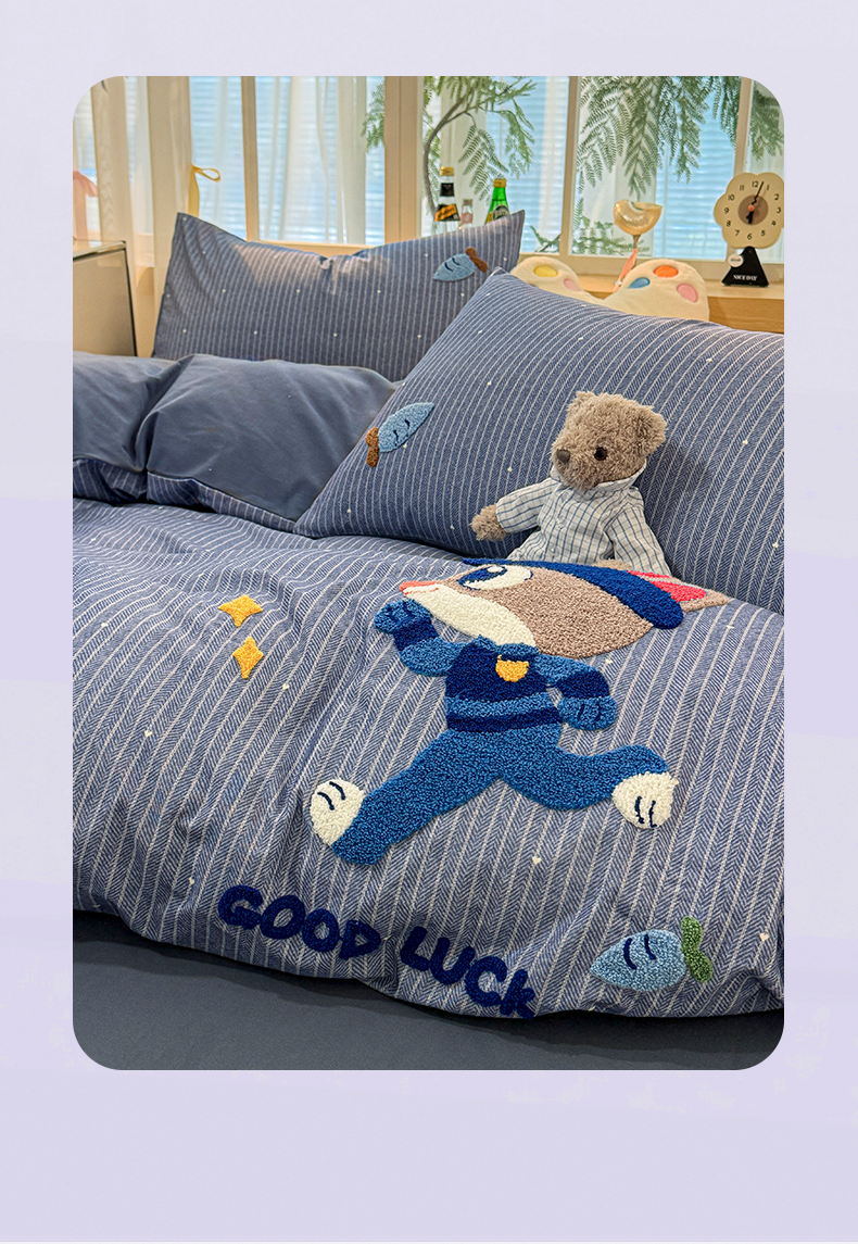 Class a Pure Cotton Brushed Bedding Four-Piece Set Children's Cartoon All-Cotton Embroidered Duvet Cover Bed Sheet Dormitory Bed Three-Piece Set 4