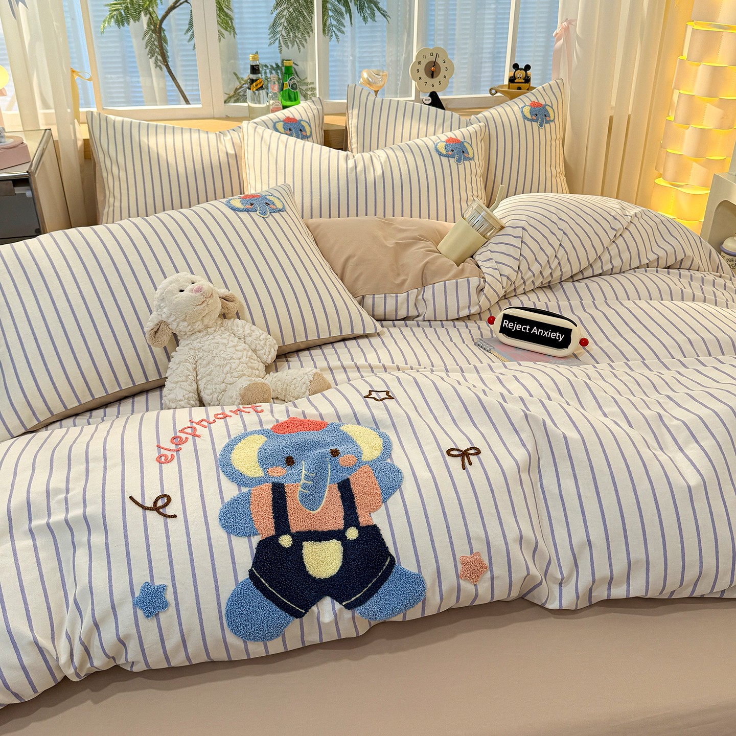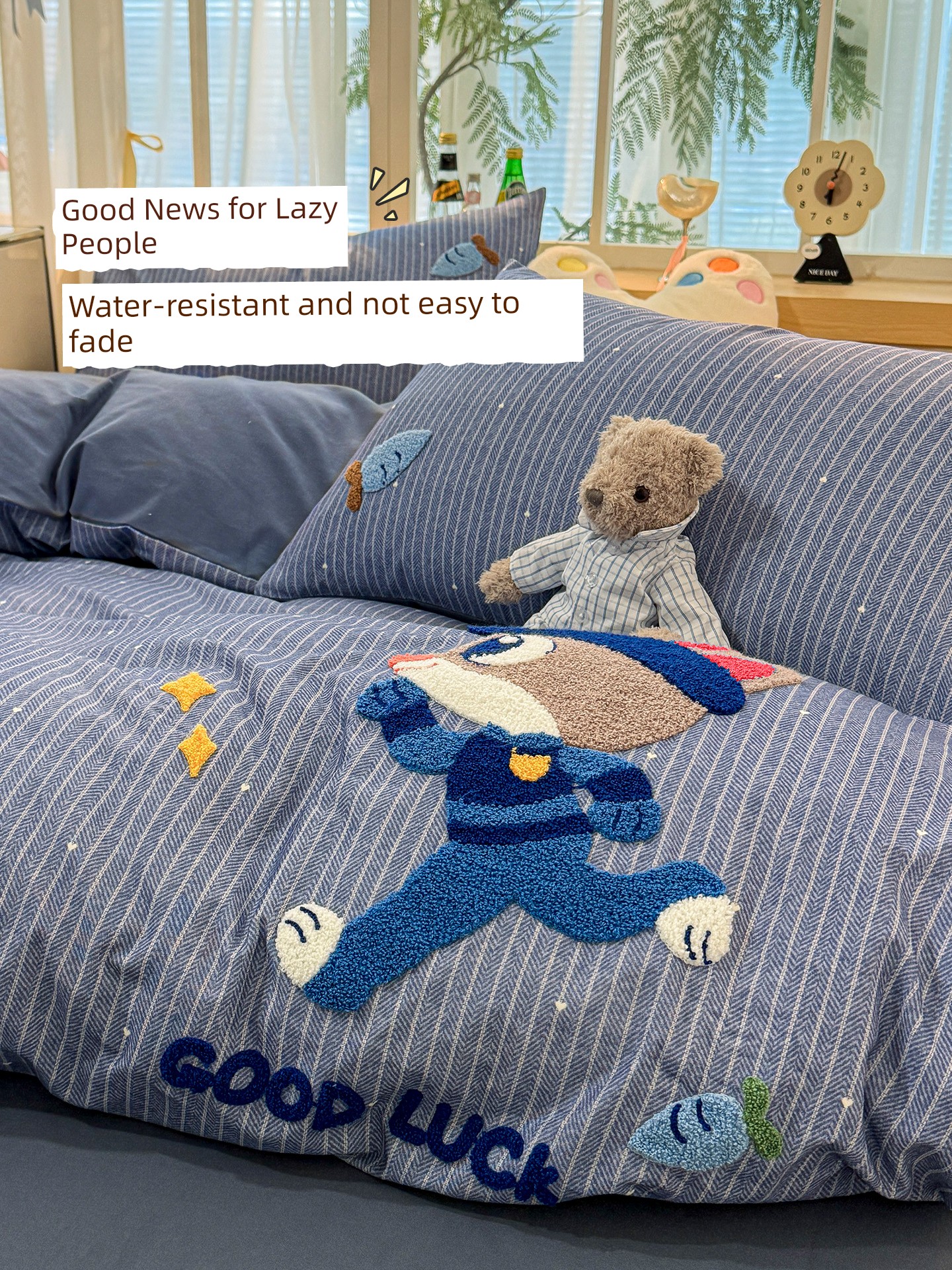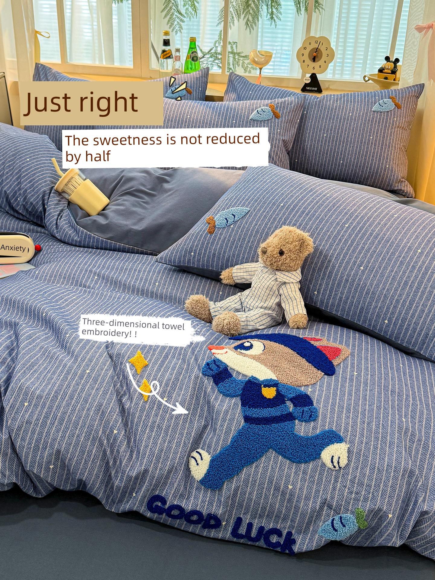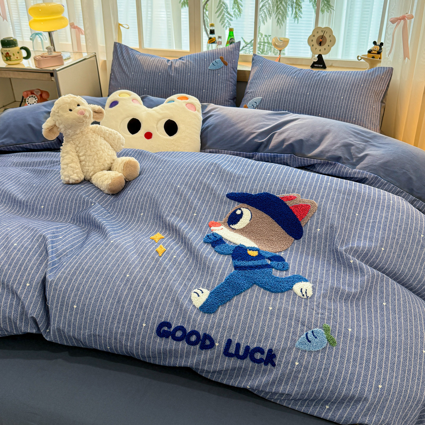 Class a Pure Cotton Brushed Bedding Four-Piece Set Children's Cartoon All-Cotton Embroidered Duvet Cover Bed Sheet Dormitory Bed Three-Piece Set 4