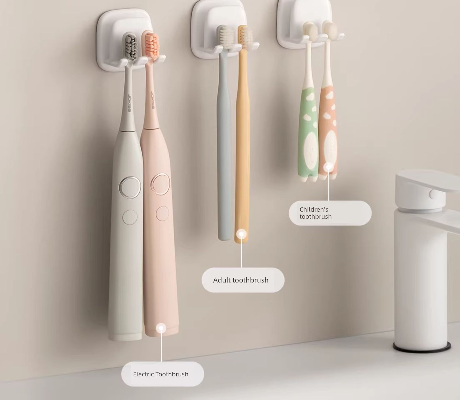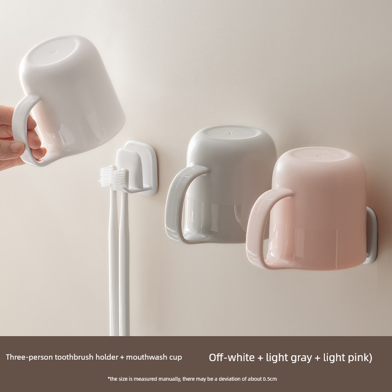 Three-Person Toothbrush Holder + Mouthwash Cup [Off-White + Light Gray + Light Pink]